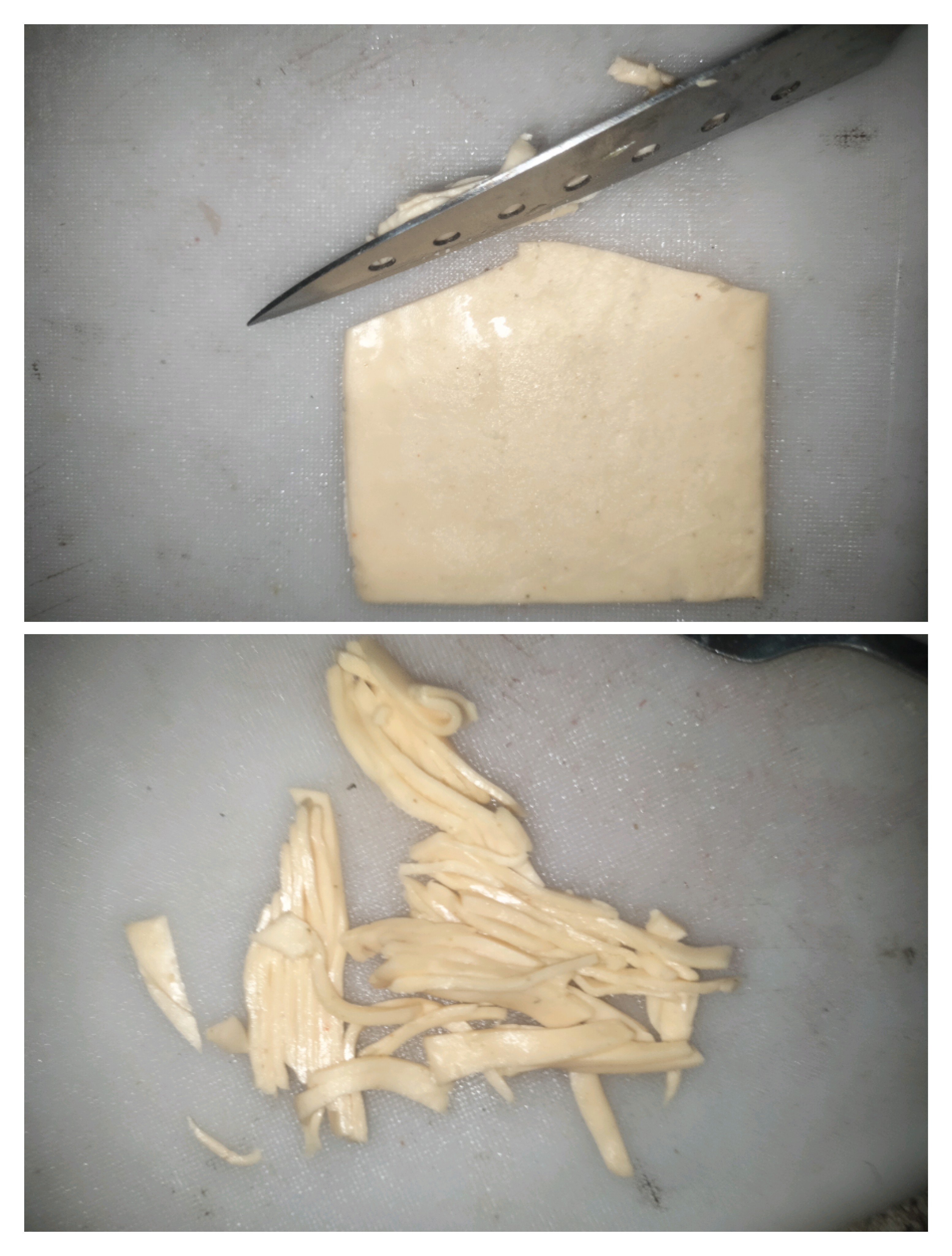 এরপর আমি একটা চিজ চিকন চিকন করে টুকরো করে কেটে নিলাম।