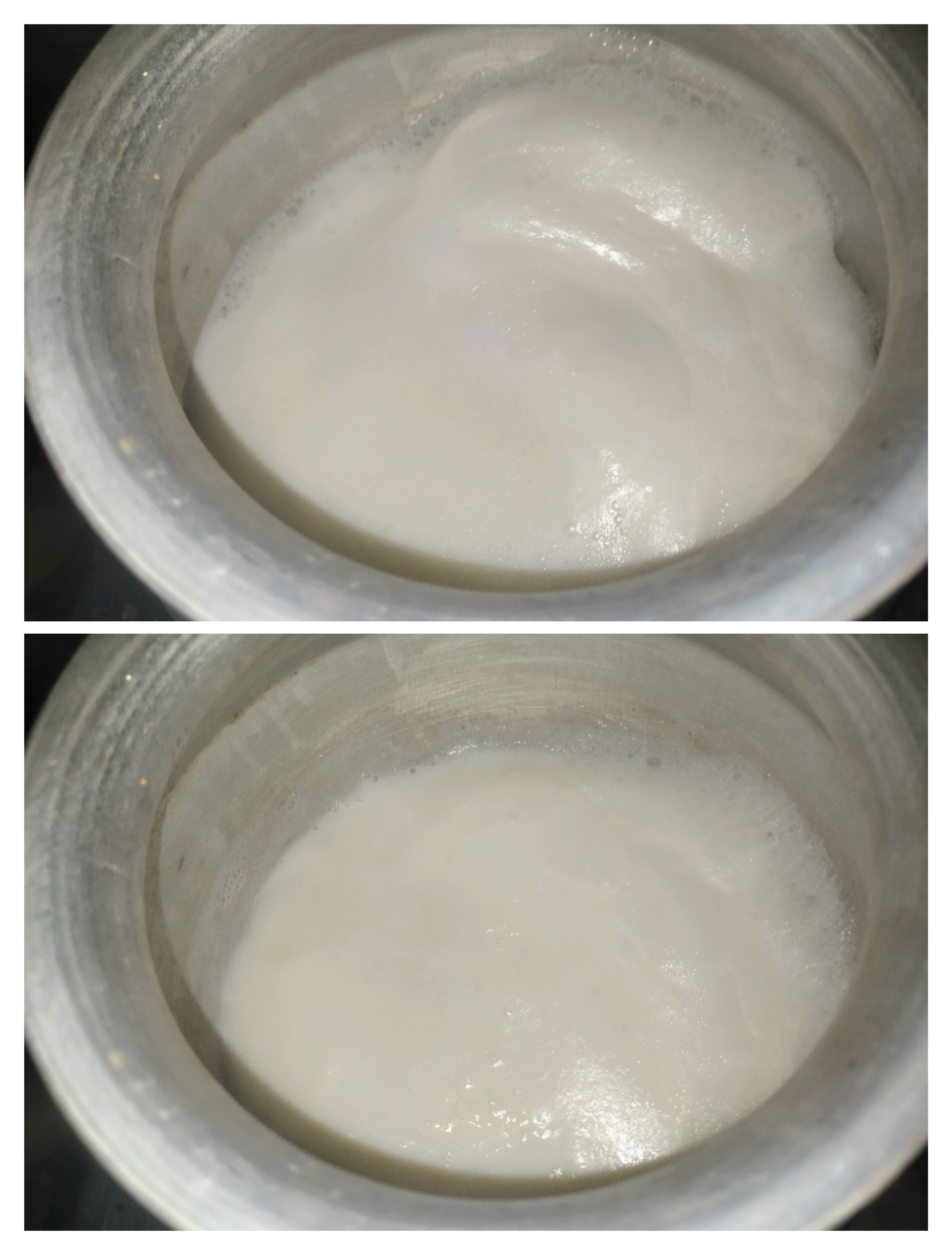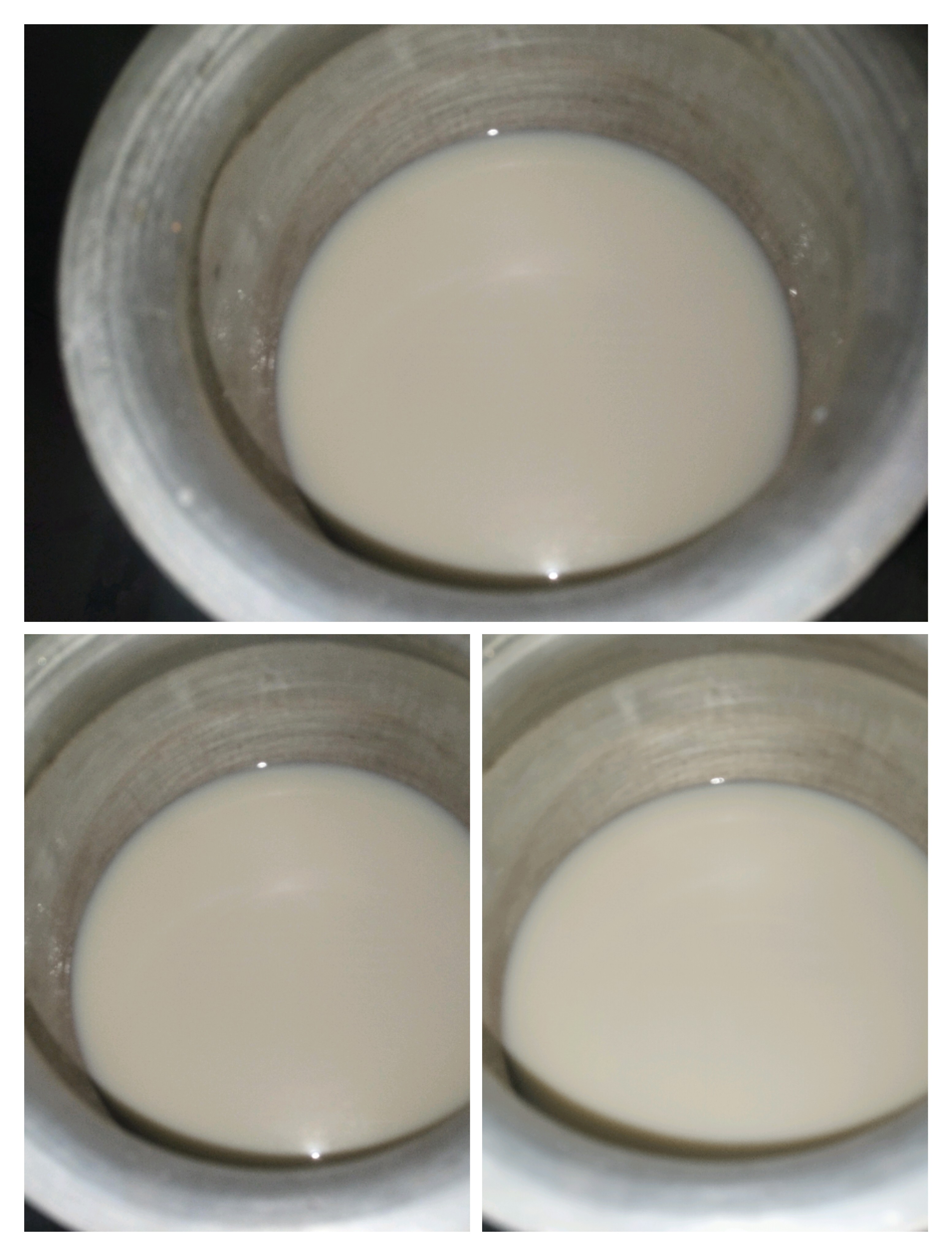 এরপর আমি একটি পাথরের মধ্যে চুলায় দুধ বসিয়ে দিলাম। এর মধ্যে আমি চিনি এবং লবণ দিয়ে দিলাম।