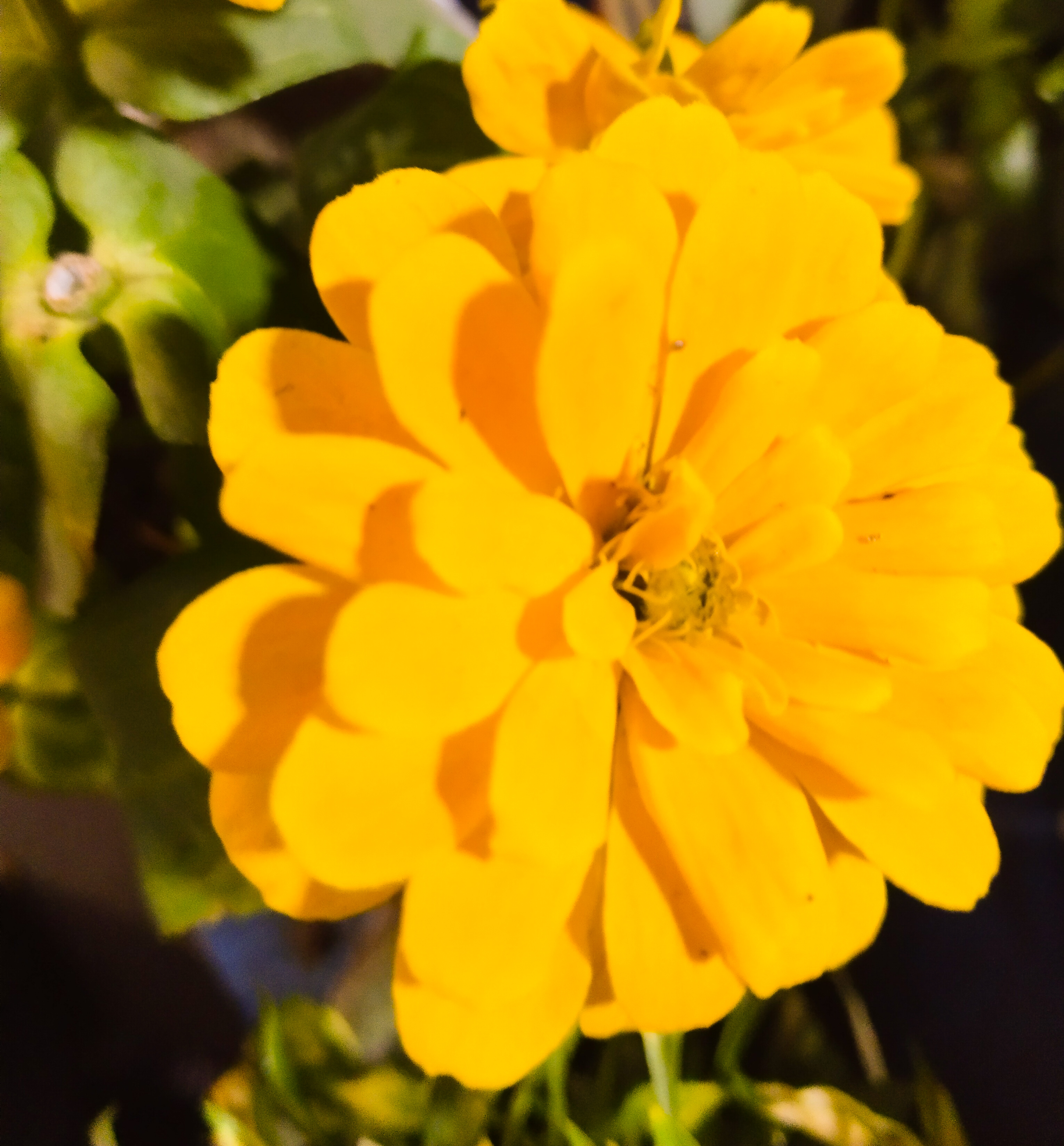 এবার আবার আরেকটি গাঁদা ফুলের ফটোগ্রাফি নিয়ে এলাম। আসলে গাঁদা ফুলের ডিজাইন ও কালার গুলো দেখতে হরেক রকম হয়। কোনটার কালার হলুদ কোনটা কমলা আবার কোনটা কাঁচা হলুদ প্রতিটা কালারই অসাধারণ। এই ফুলটিও যখন ফটোগ্রাফি করেছি তখন এই ফুলটির মাঝে শীতের আভাসে ফুলটি যেন আরো সুন্দর রূপ নিয়ে প্রকৃতিতে সেজে আছে সকল ফুলের মাঝে।