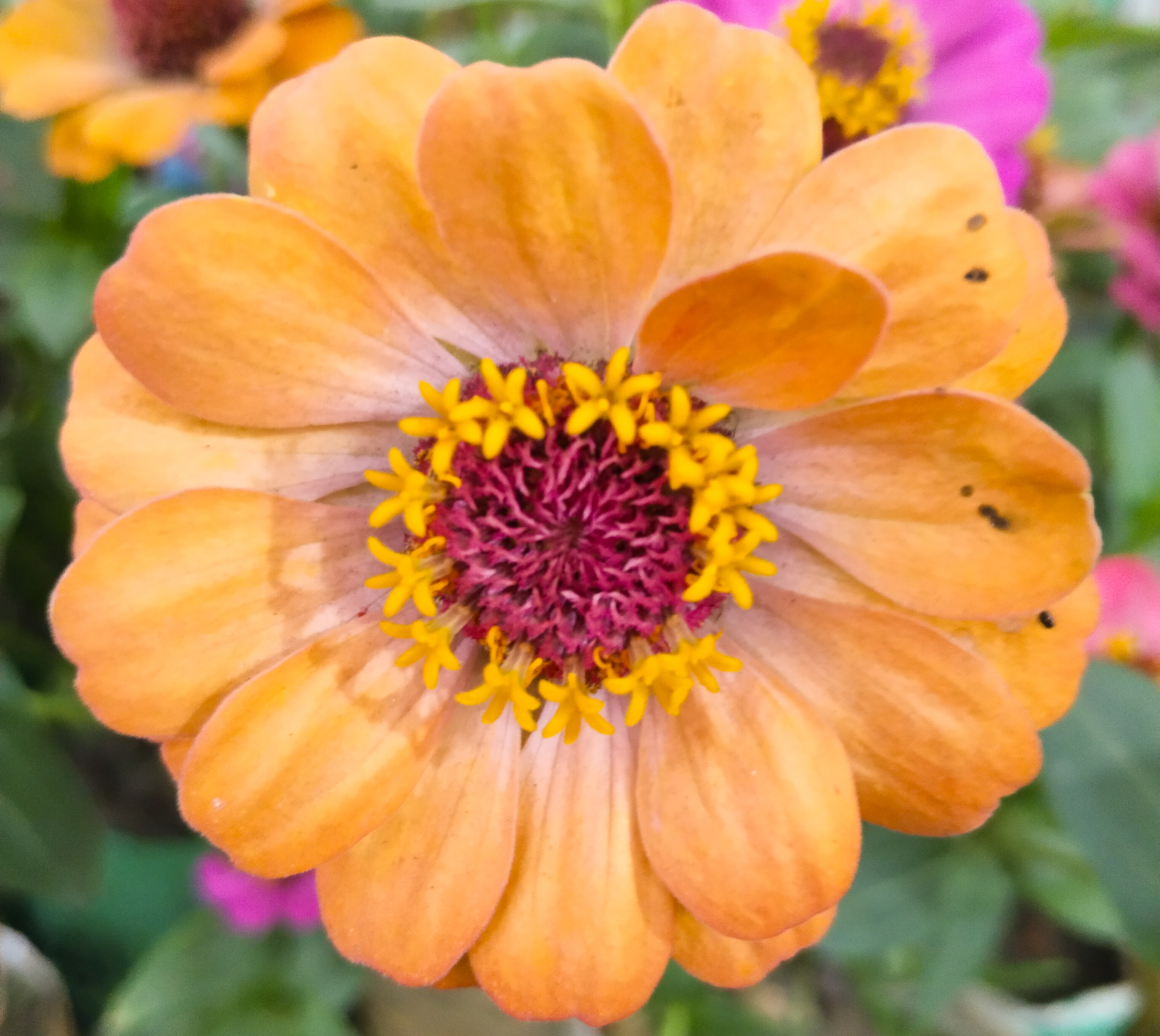 এই পৃথিবীতে প্রায় অনেক রকমের ফুল ও তার ডিজাইন আর কালার আছে তা আমরা আসলে কেউ বলতে পারব না। প্রতিনিয়ত অনেক রকমের ফুল আমরা দেখে থাকি। এ ফুলটিও হলো তেমন একটা আকর্ষণীয় ফুল। উপরের ছবিতে আমি এই ফুলটির আরো একটি কালার শেয়ার করেছি। এই জিনিয়া ফুটিরও অনেক রকমের কালার রয়েছে। তাই এটিকে বাহারি রংয়ের ফুল হিসেবে সবাই চেনে। জিনিয়া ফুলের অনেকগুলো কালারের মধ্যে সাদা, হলুদ, লাল বাদামী বেগুনি কমলা আরও হরেক রকমের কালারের এই ফুল হয়ে থাকে। তবে আমার চোখে যে কালারগুলো পড়েছে আমি শুধু সেগুলোর ফটোগ্রাফি করেছি।