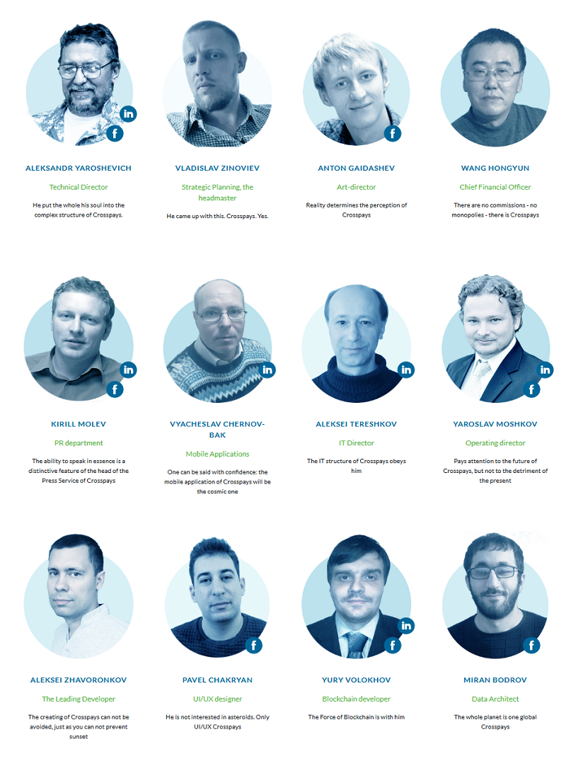 The team behind Crosspay includes experts who have impressive interest in related fields, regardless of whether it is the innovation, business system or arrangement of such a stage. It is driven by Vladislav Zinoviev, who heads the administration group, Alexei Tereshkov who is IT chief, Alexander Yaroshevich who is specialized executive and others. There are a few other people who work in various parts to bring this plan of action to fruitful acknowledgment.