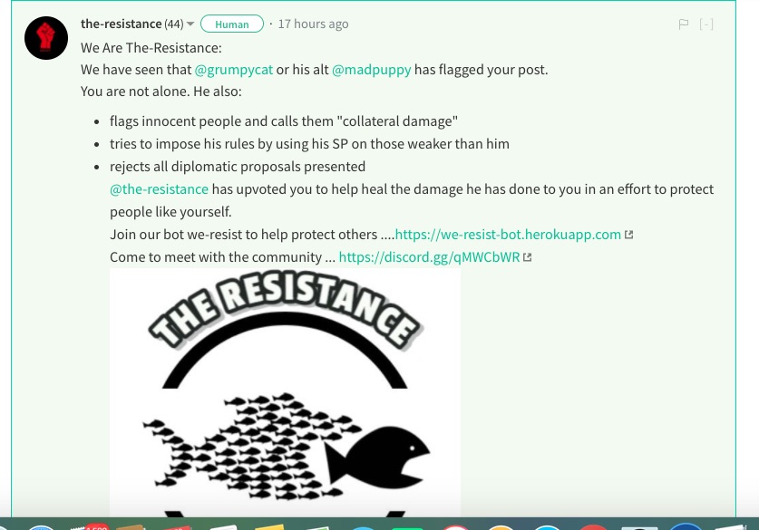 So in turn everytime grumpycat would downvote a post, the resistance would muscle in and upvote it. Ok it did not make much of an impact to the post, but the resistance was and is there, and it seems to be growing.