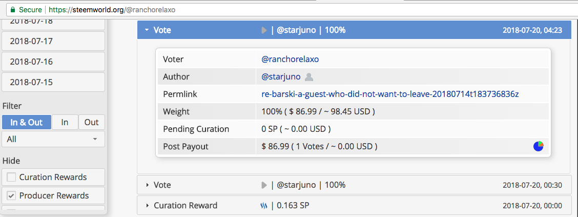 It seems " @ranchorelaxo " ;) Was very generous that day. Gave " @starjuno " (another highly suspected @haejin controlled account) 2 100% upvotes, WOW! What a guy :) Let's see the comments...