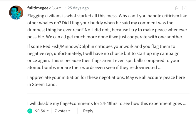 I agree with the normalization of flagging, though. That would make the platform a lot better.