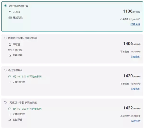 包含一元早餐的房價比最低的預付房價貴了一點,但是可以取消,靈活性上不錯。值得考慮。