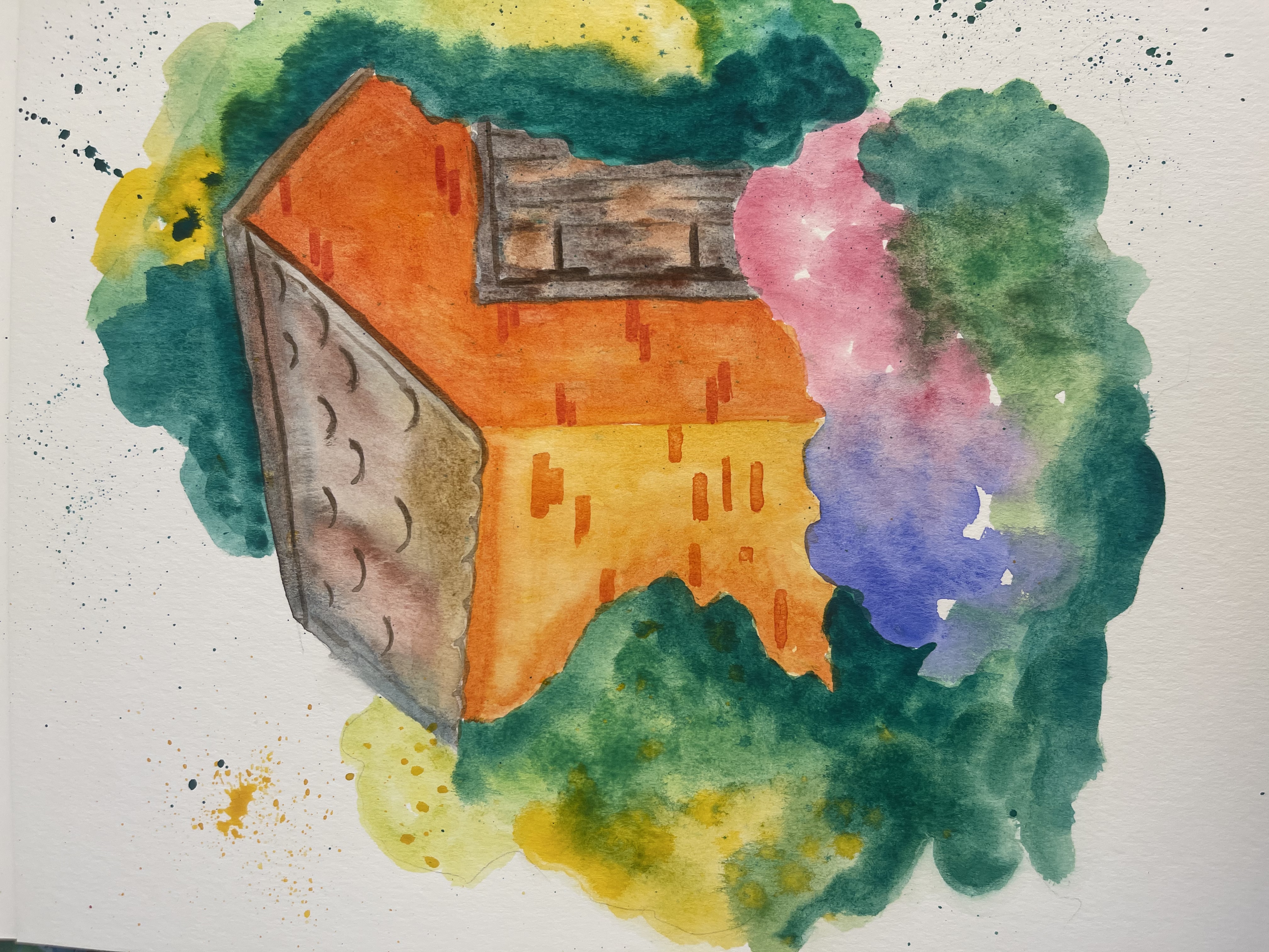 Again I used watercolors, watercolor paper, pencil, eraser, paper tissue.