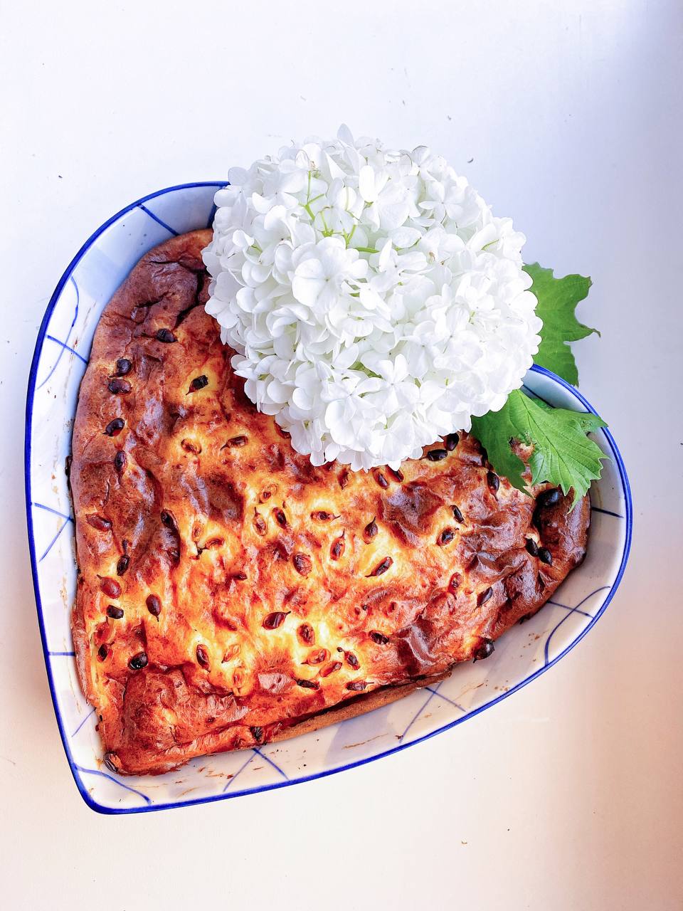 ✅ Put 1/2 of the mass into a mold. Sprinkle berries. Cover with the remaining curd mass.
