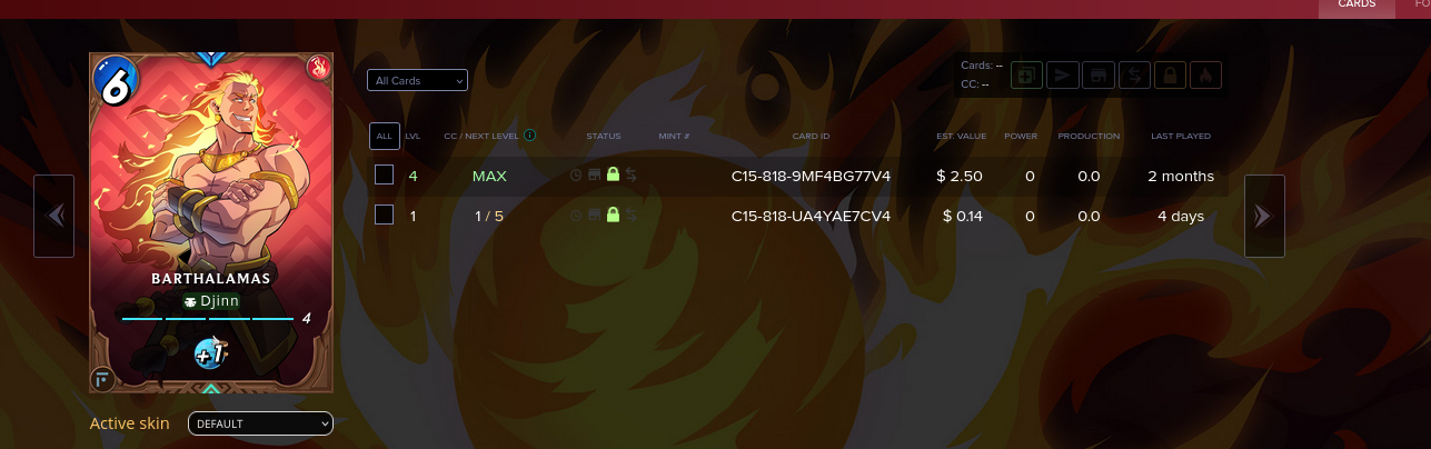 I got really fund of the automatic combine button in Splinterlands collection interface. This combination could be done in Peakmonsters, but I was too impatient to enter the arena with my new max out tanker from the Foundation Fire element.