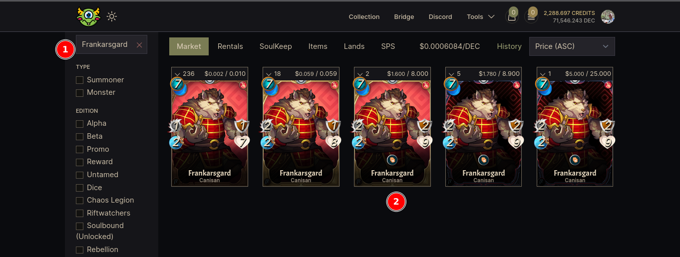 B-/ From Splinterlands to Peakmonsters market
