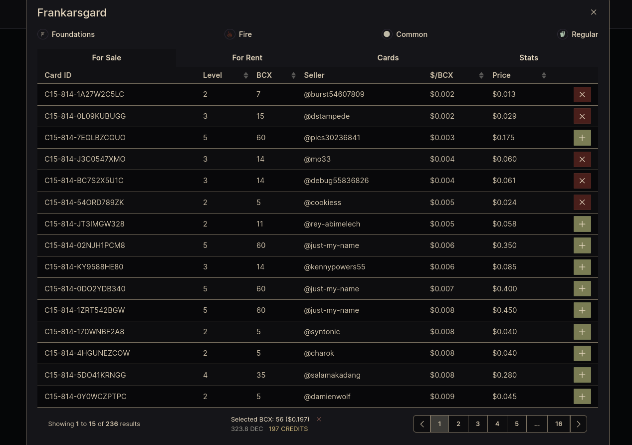 It is now time to get the number of cards I will buy to reach the highest level of Frankarsgard. I have actually 4 cards and I need 56 additional copies to push the level of experience to max and unlock “enrage”.