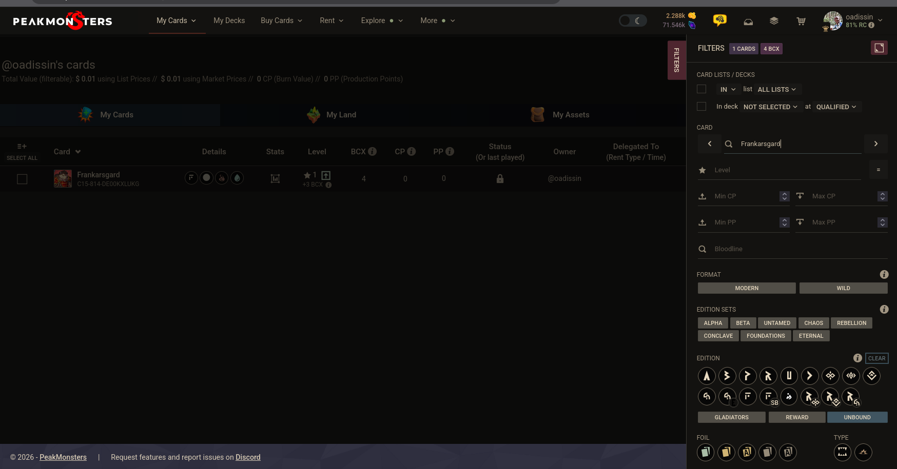 The final step is to return in your Splinterlands account to combine the collection of cards and unlock powerful abilities linked to Frankarsgard