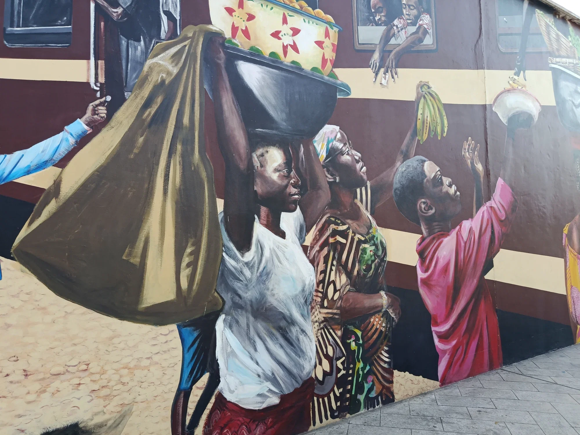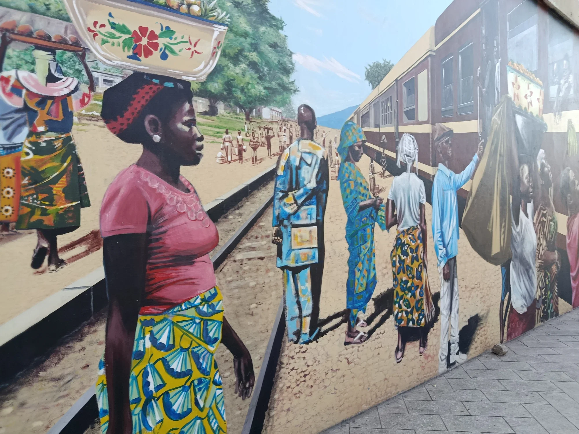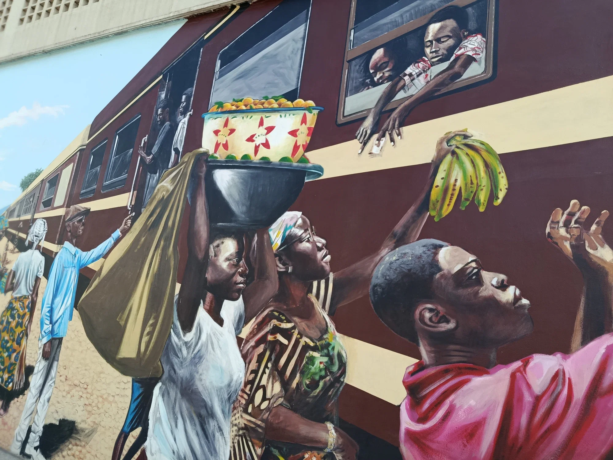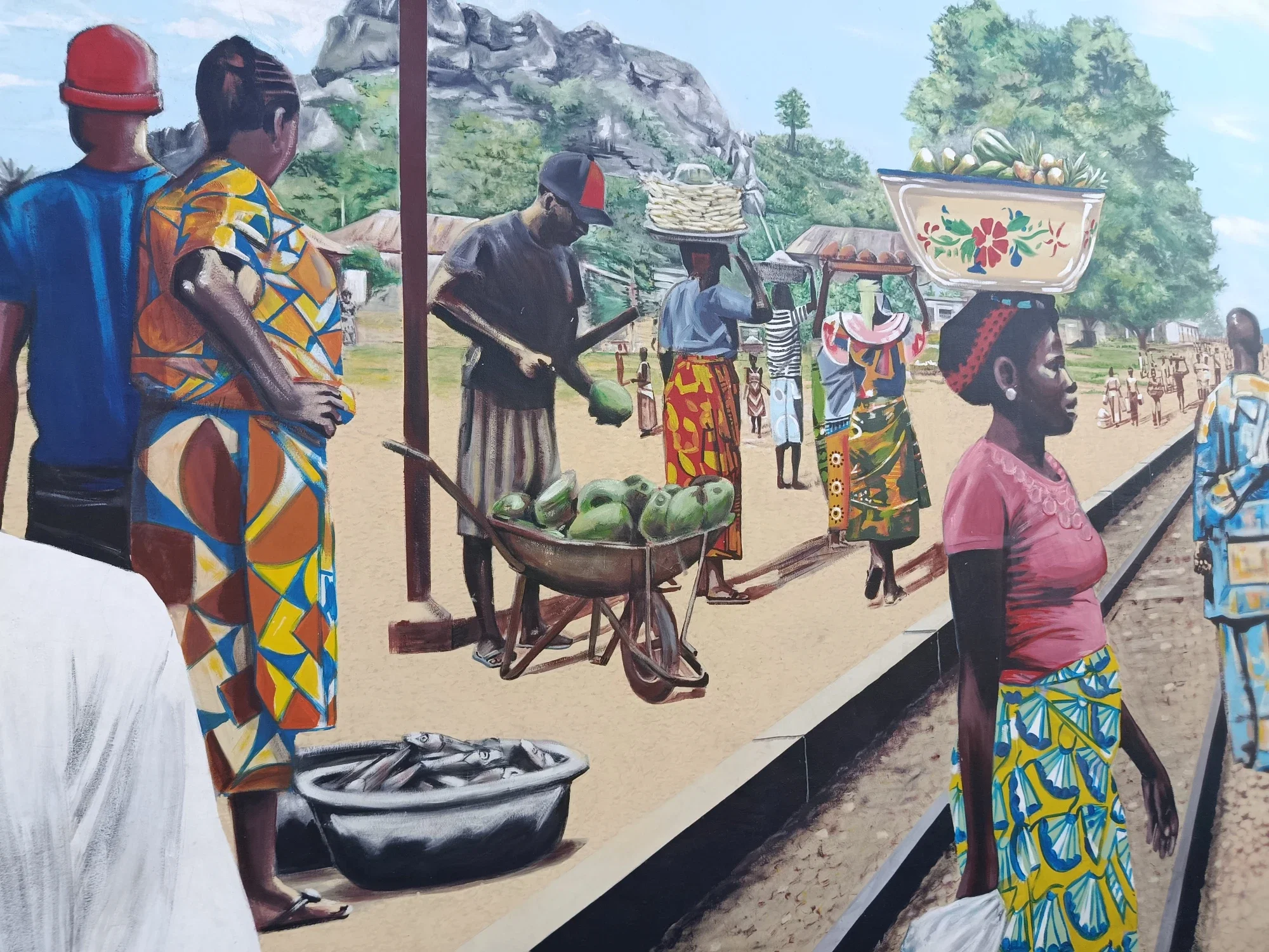 Here is the massive display of talent on the painting. The bustling sales activities around the train that passes through one famous city.