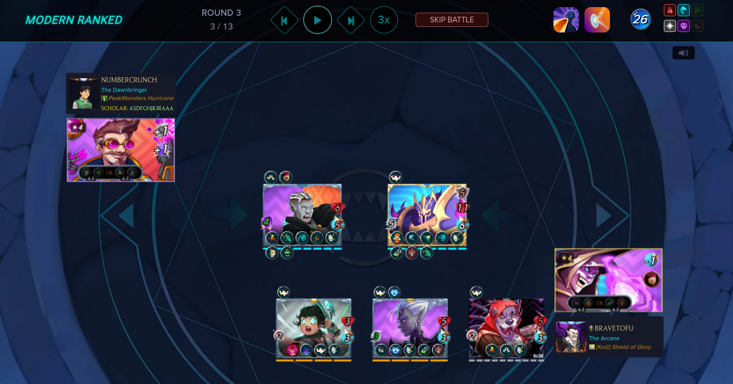 Here you can see Nythlarian in the second last position. It is not the spot you choose to sacrifice your card as pawn. The opponent made a terrible choice placing magic warriors on battlefield.