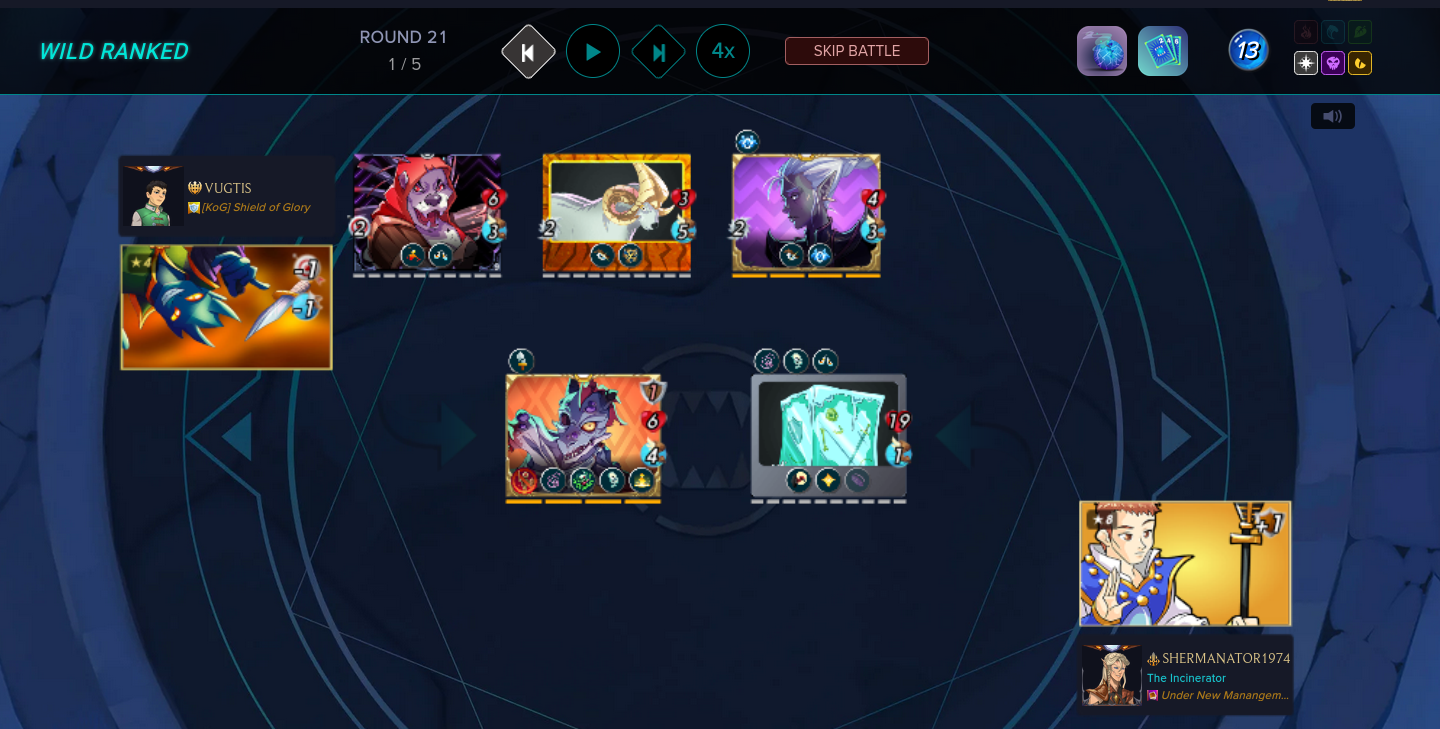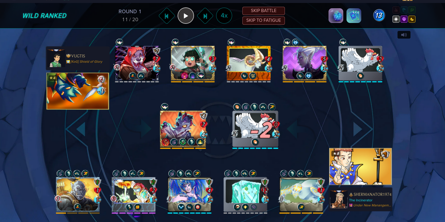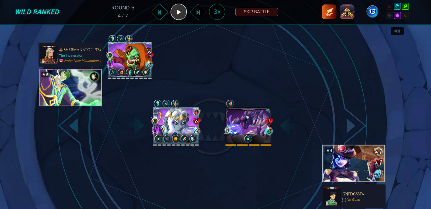 This combat was perfect to select Nythlarian with mana zero as the ruleset place mana below 15 points.