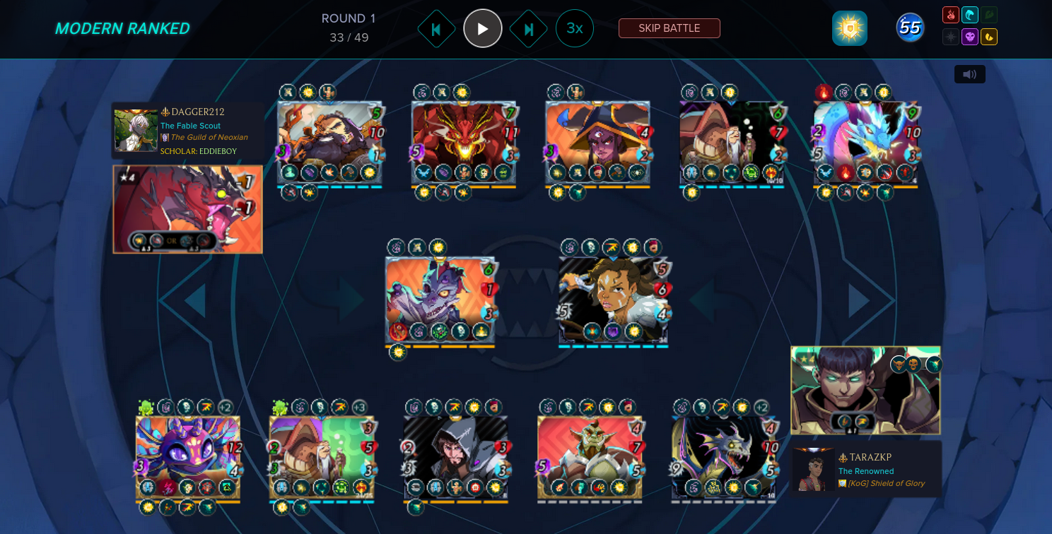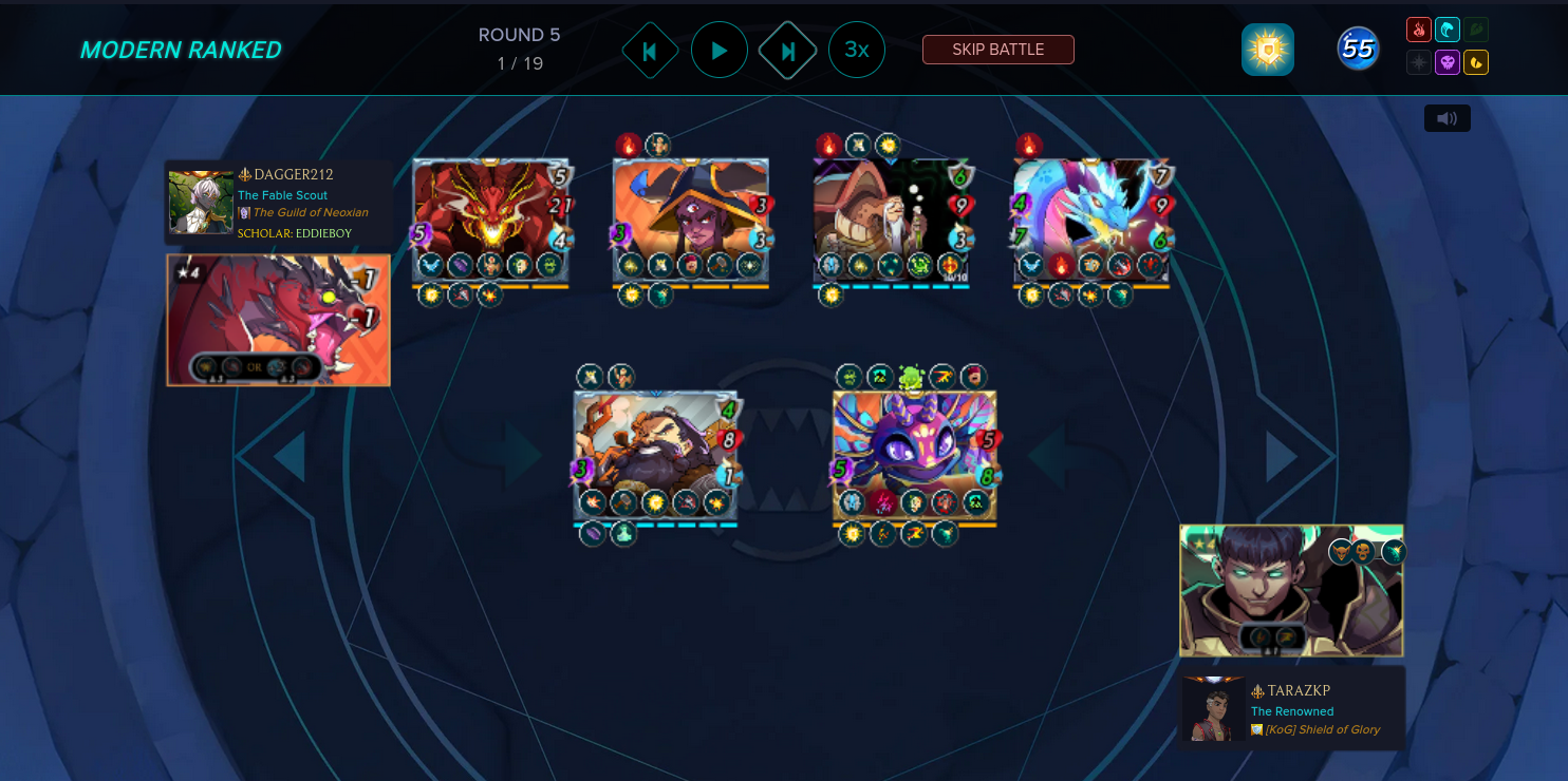 There are many battle in low league showing the performance of Wyrm without all abilities unlock. I will start at this stage and gradually level up my melee warrior up the max level where summoner capable to unlock his potential in Modern format will command his actions in the arena.
