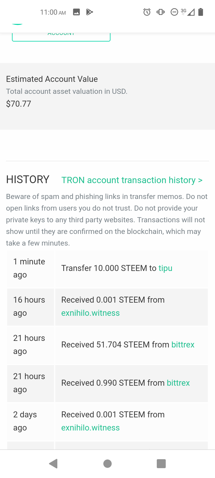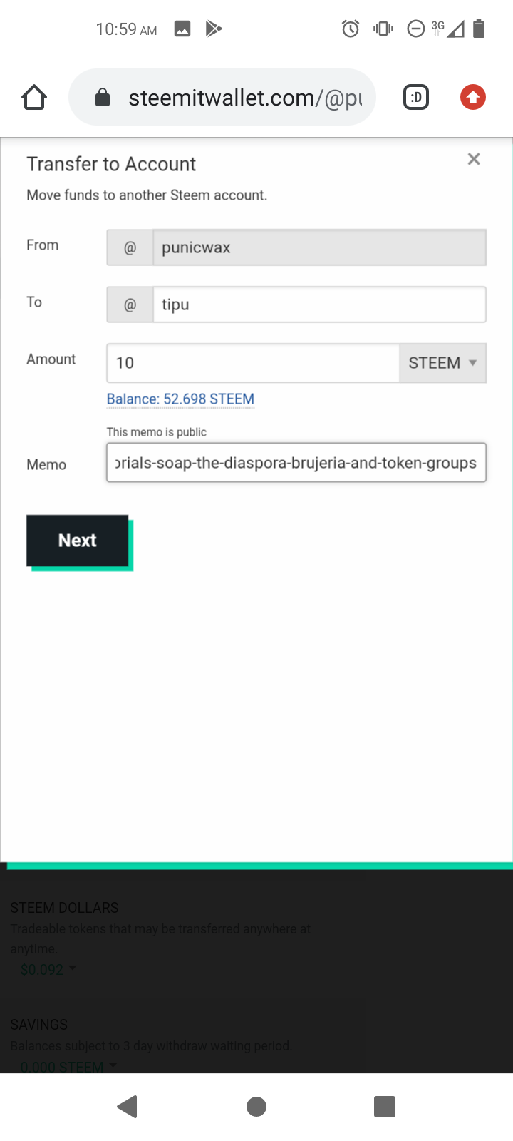 I'm sending 1 as a test, and the fee is 0.01 STEEM per transaction, so it is not an amount that should deter a test.