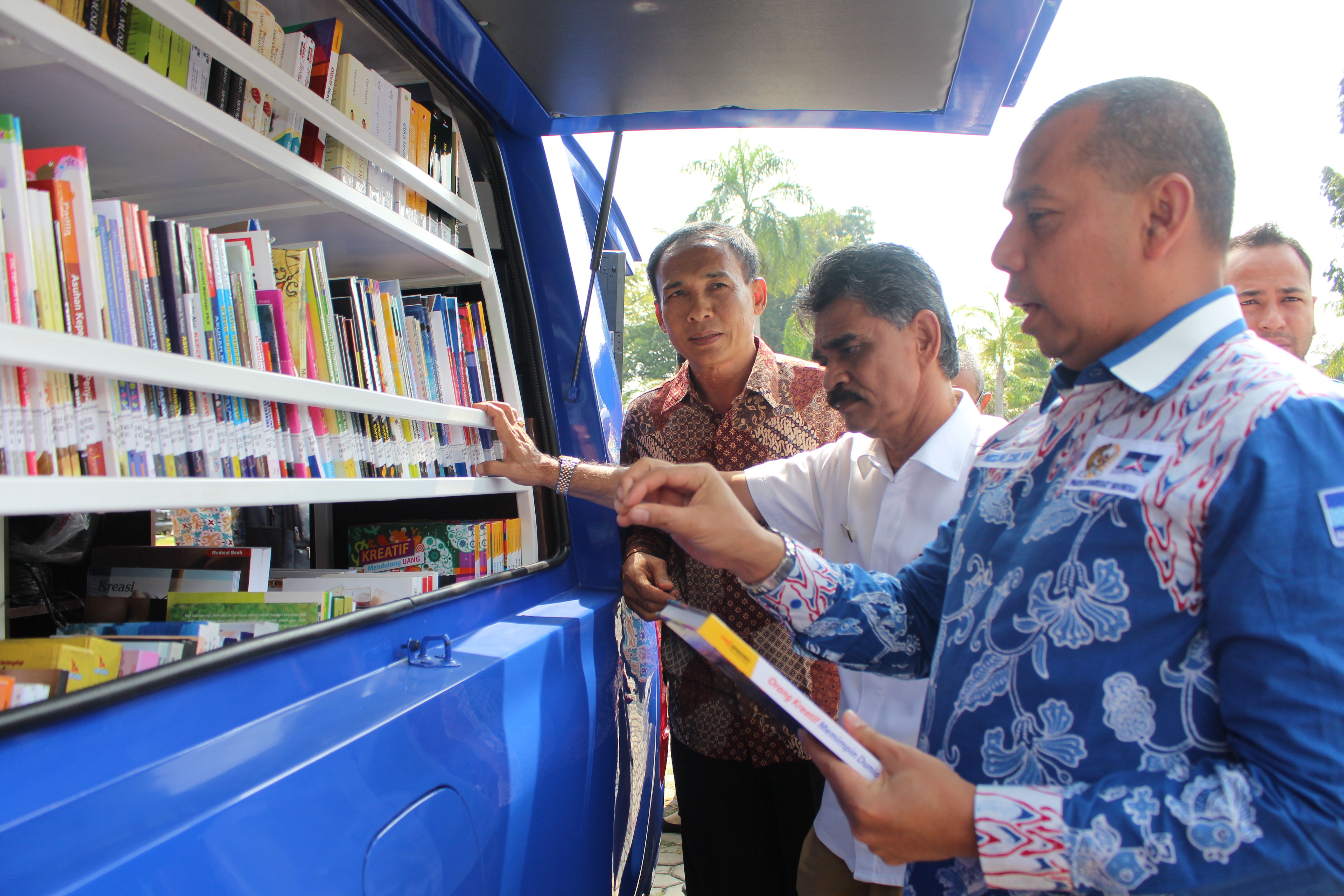 Anggota DPR-RI komisi X Muslim SHI MM menyerahkan bantuan mobil Pustaka Keliling kepada Pemkab Aceh Utara, di pendopo Bupati Aceh Utara.
