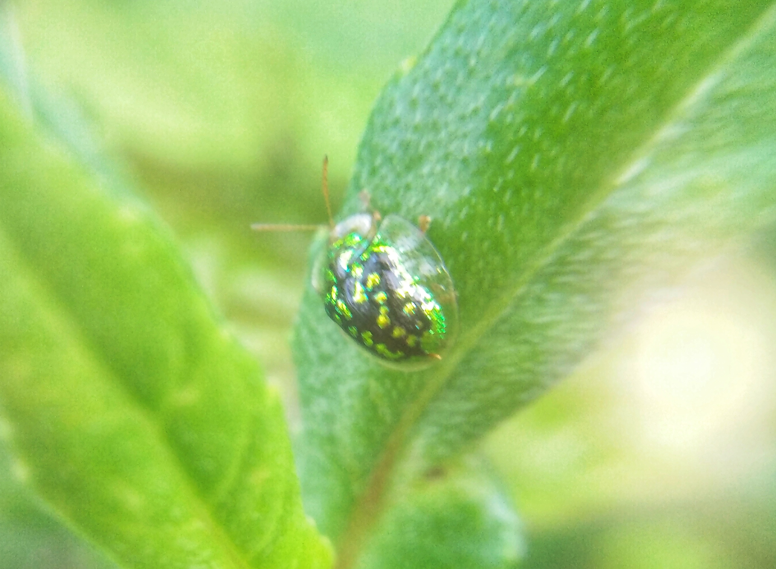 Do not want to tell too long, because this is just a coincidental discovery, when I was caring for a plant that we cultivated in our small garden, let's enjoy, the black green ladybug with transparent glass body shield