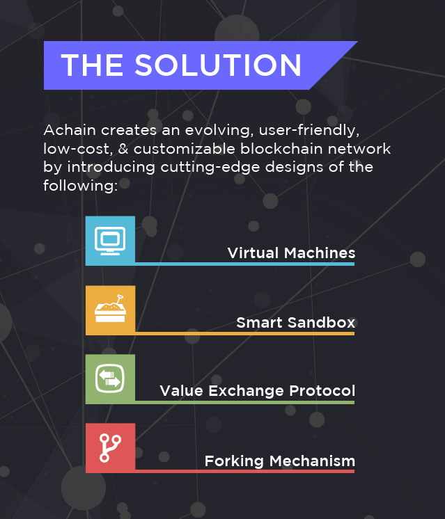 Achain is creating a blockchain network with direct implementations of Virtual Machines, Smart Sandbox, Value Exchange Protocol, and Forking Mechanism. A virtual machine provides a simulated computer that guest applications will see as the whole system. It is not necessarily sandboxed since it can provide write access to any shared location on the host computer. It can provide write access to any shared location on the host computer. A smart sandbox does not have to simulate a computer, just restrict access permissions for running applications. The Value Exchange Protocol is a gateway for information sharing and value exchanges using the application’s cryptocurrency. The forking mechanism is their principle that they will embrace forking to create sub-chains built on top of Achain because of different uses. To other blockchain technologies, a forking is either a sign of improvement or due to the managements’ irreconcilable differences from running the blockchain. In Achain, they’ll be creating a fork of the blockchain but all created forks will be of the same level of Achain.
