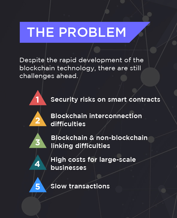 There are around 2,000 coins and tokens to date but they couldn’t easily be interconnected. Just like in Ethereum, there are many ERC-20 standard tokens but they can’t communicate with each other. - Blockchain and non-blockchain linking difficulties
