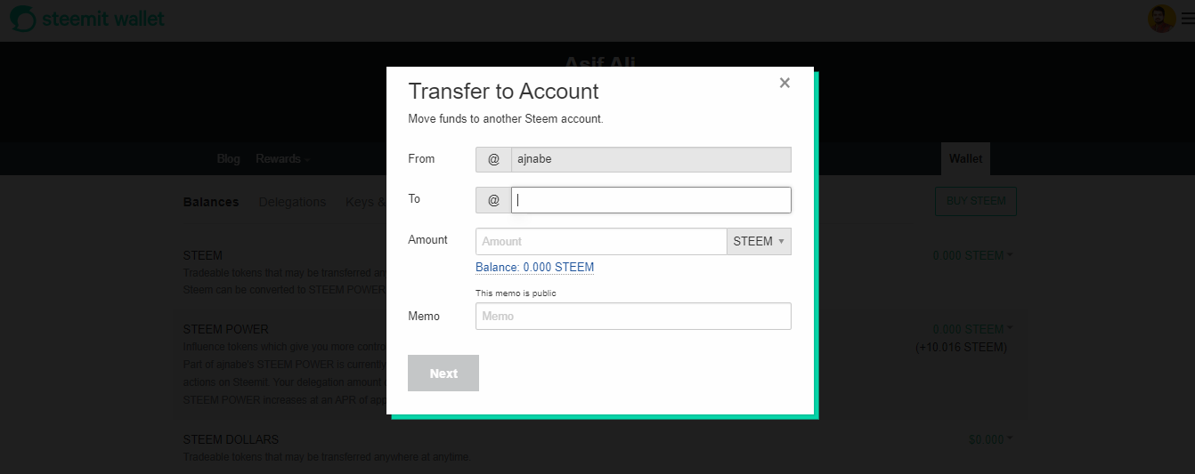 After that write the username of other account and then enter amount you want to transfer and click next