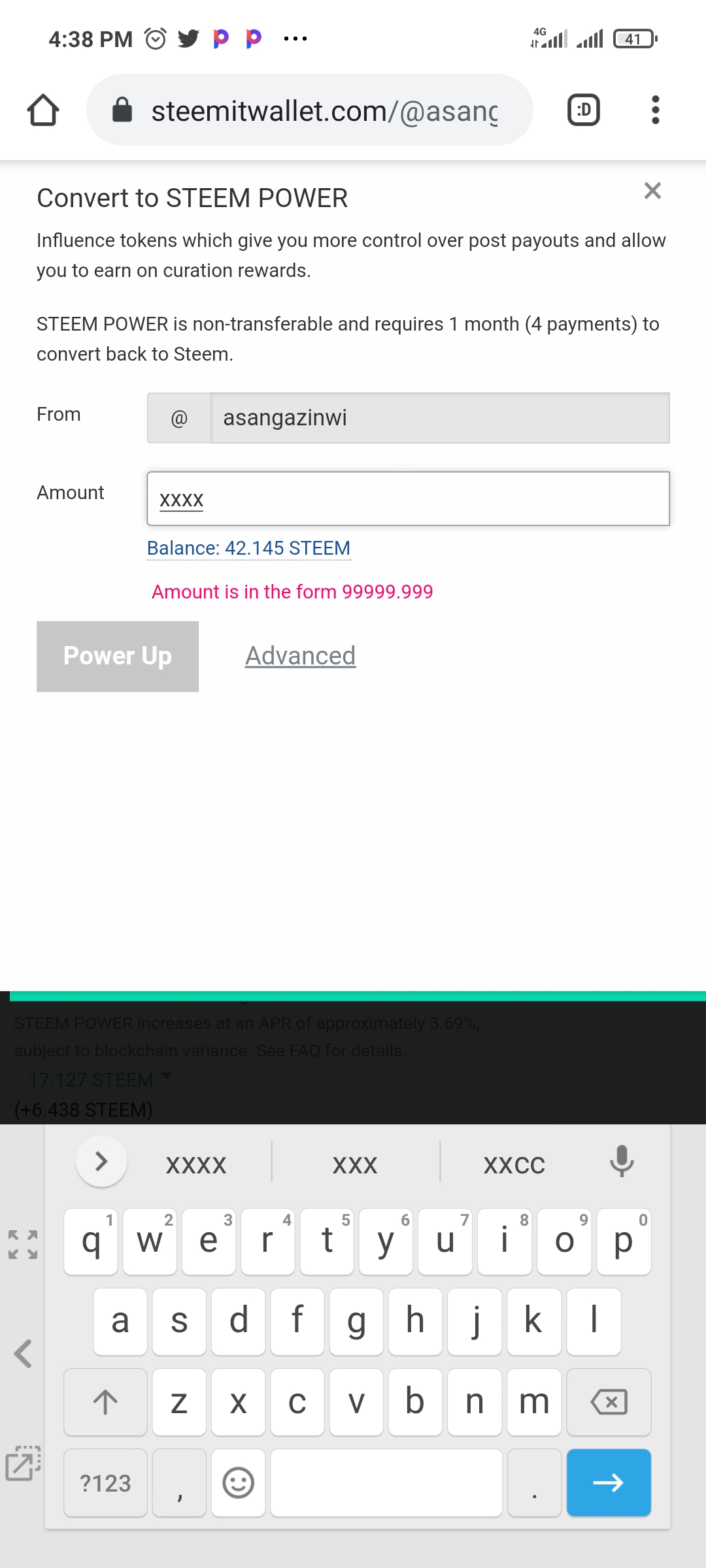 - Enter the name of the account you're powering and click on POWER UP and it's done.