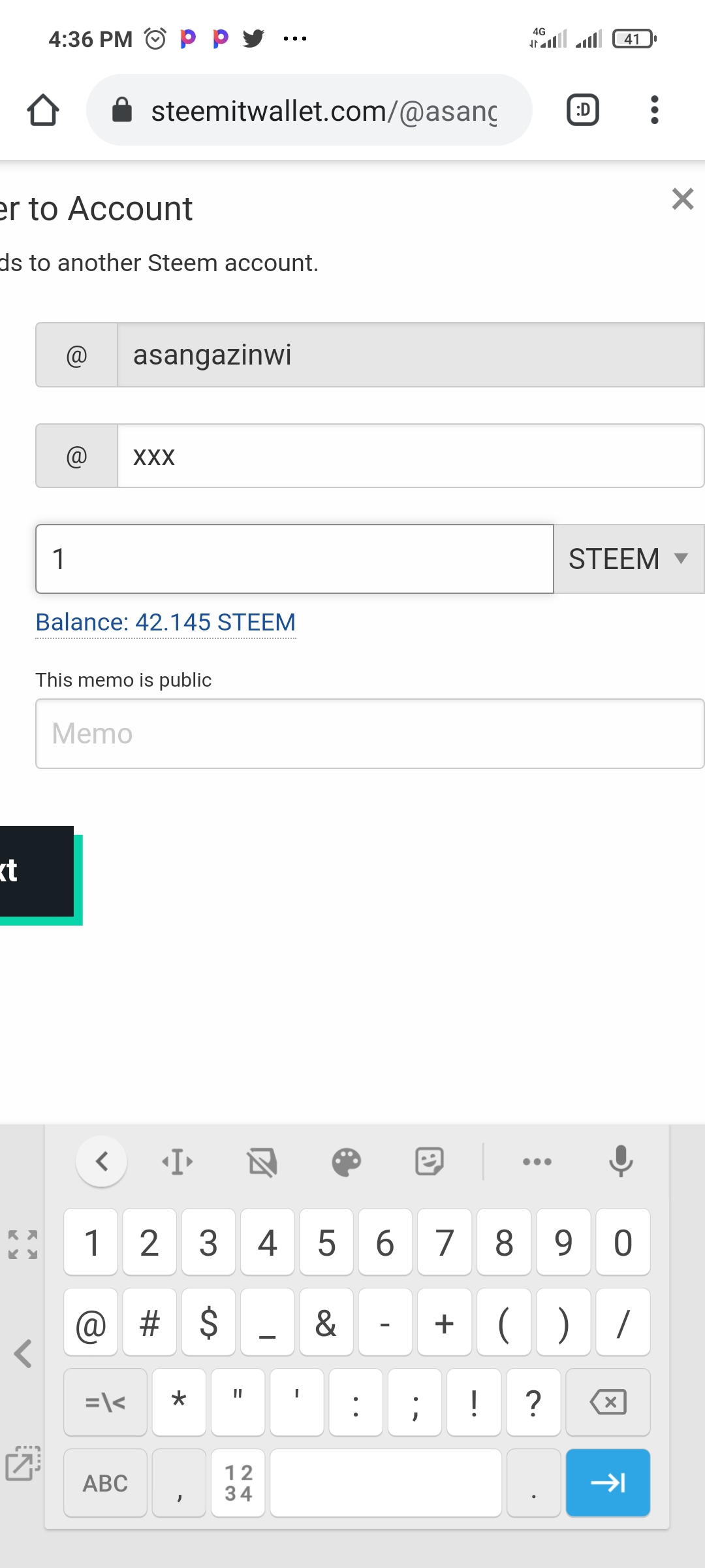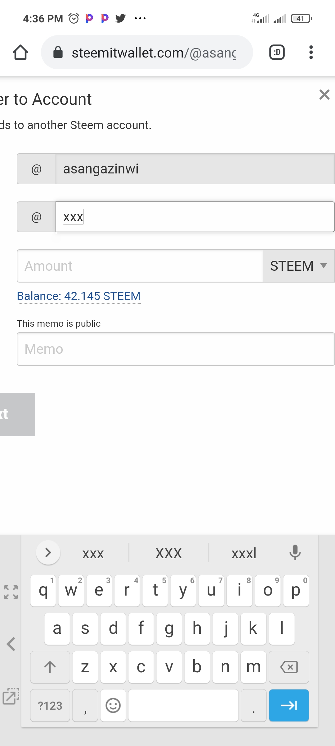 - Enter the amount of steem you wish to transfer and proceed to send and that's all.