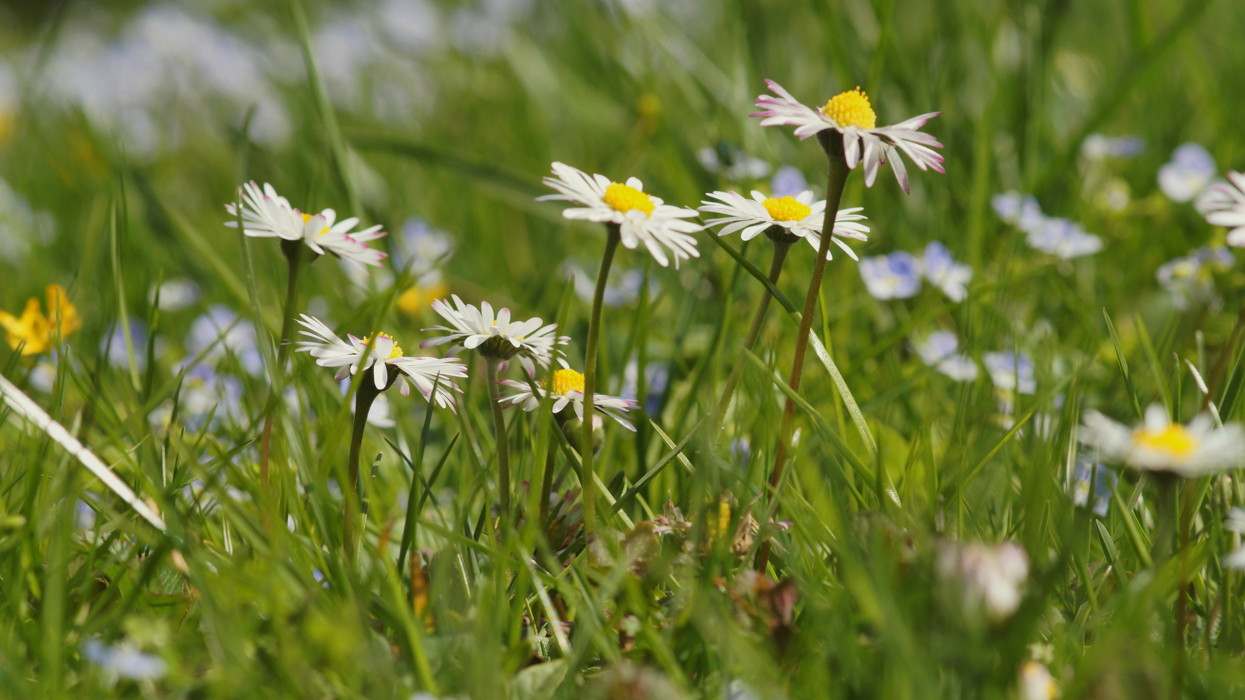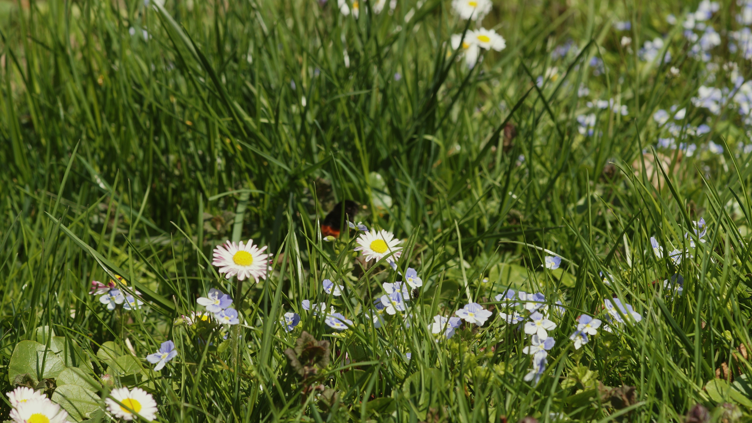 Ansonsten sind zur Zeit die Wiesen voll mit allerlei schönen Blumen, vor allem die Gänseblümchen stechen mit ihren weißen Blütenblättern sehr stark hervor.