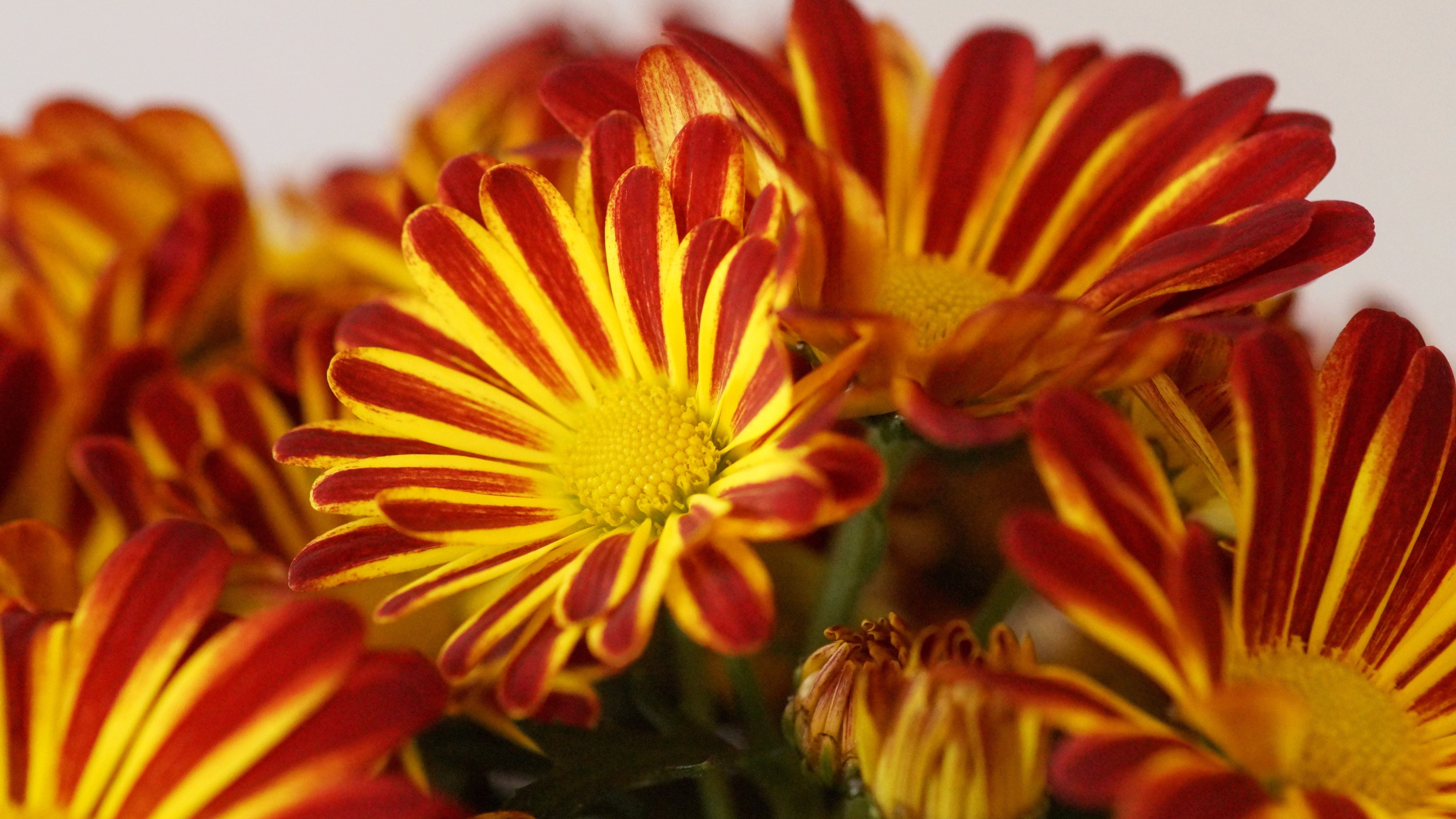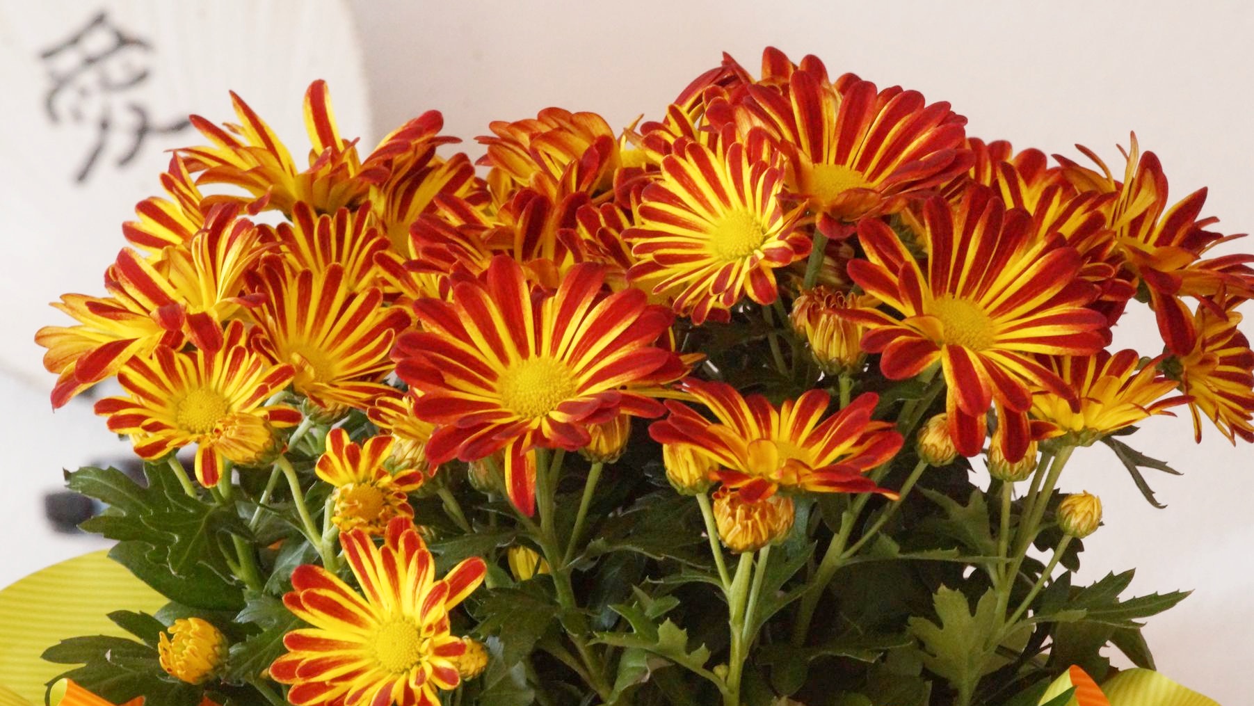 Zum Osterfest habe ich Chrysanthemen Blumen in die Wohnung geholt.