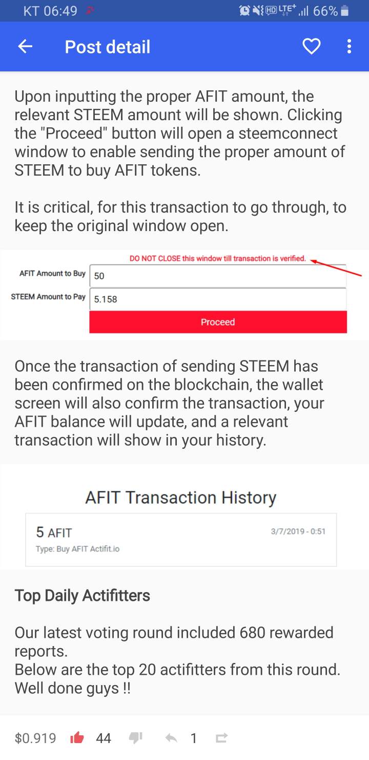This option makes this process easier for anyone wanting to exchange AFIT for STEEM upvote, while not having the min 100 AFIT tokens to do so, but also in preparation for the upcoming new utility use cases for the AFIT tokens.