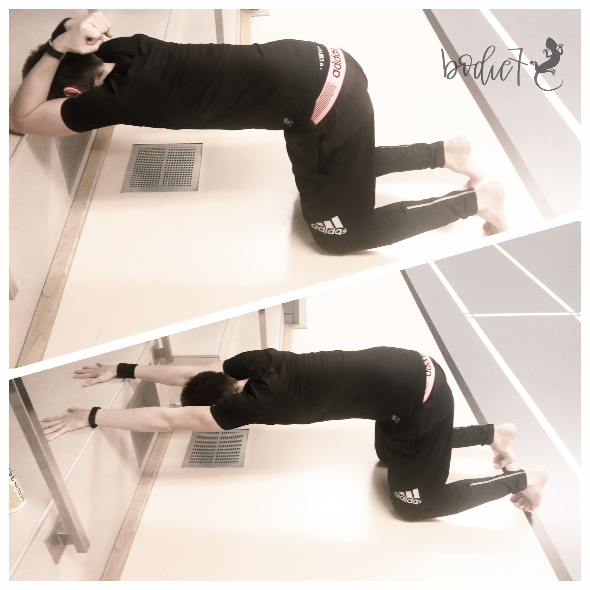 - Dnešní den začal Wim Hofovou technikou dýchání. O tom chci taky psát. Snad na to všechno nezapomenu. Pokračoval přes badminton a končil shybama, po nichž používám třeba tenhle (viz obr.) strečinkovej cvik, abych ulevil zádovým svalům. Dobrý ještě je, vzít si do ruky tyč, aby člověk udržel ruce cca na šířku ramen (je to starting point, není to nutnost) a udržet bedra v relaxovaný poloze, aby se hezky protáhla celá ta oblast ramen. Dá se to taky použít jako "otvírák" na ramena ke stojce...