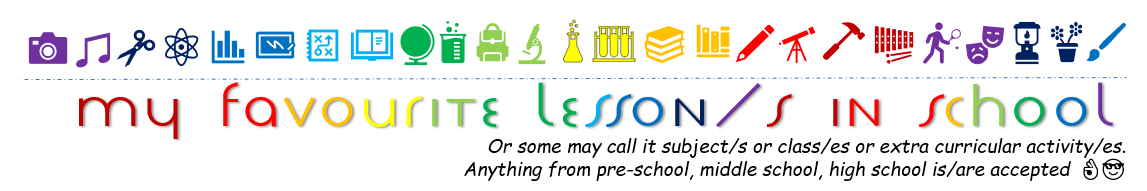 Create a post about your favourite lesson/s or subject/s or class/es or extra curricular activity/es in school. Did you like the Art or Biology or Mathematics or Literature or maybe Music lesson/s or Swim lesson/s or something else? Share your post with us!