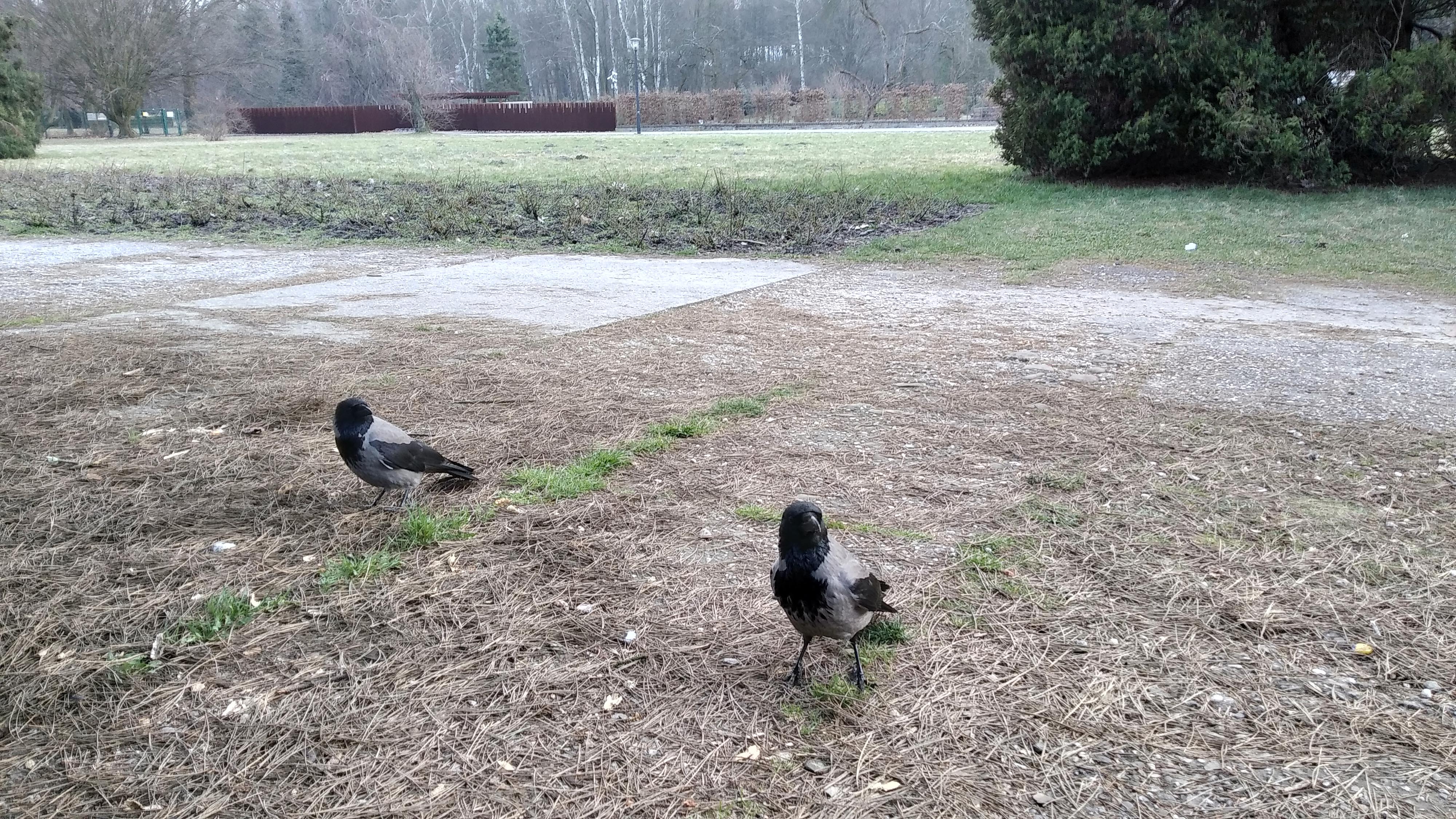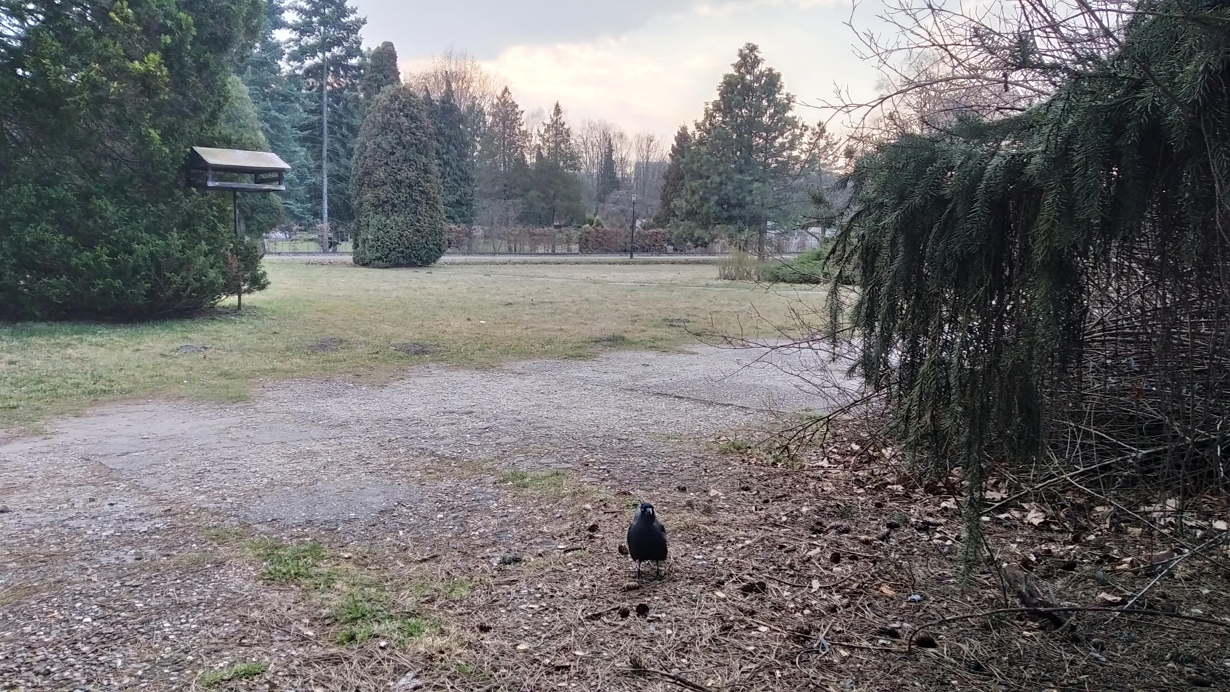Jako, że spóźniłem się na karmienie ptaków dość znacznie, przybyły jedynie kawki i wrony. Te drugie podchodzą już bardzo blisko, jednak oswajanie trwało długo bo od jesieni.