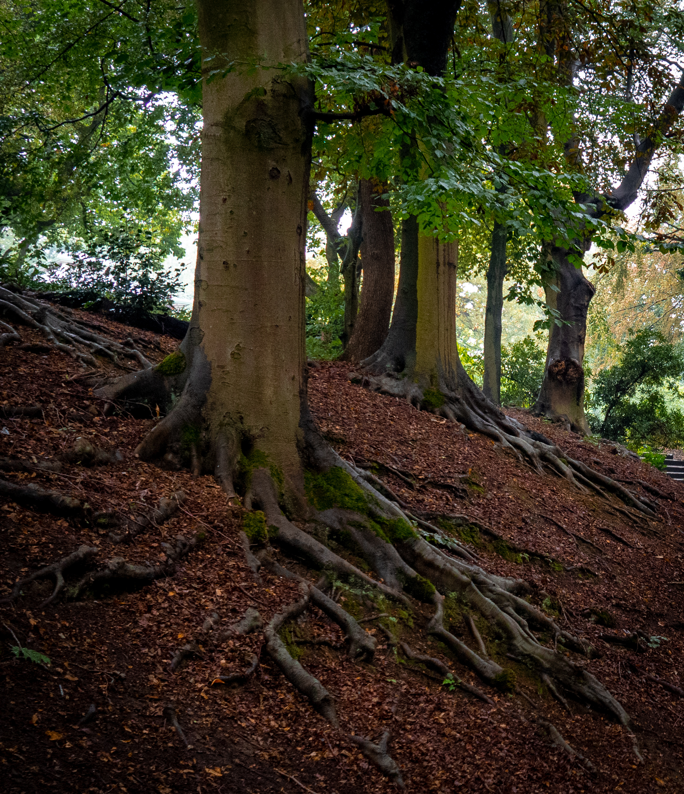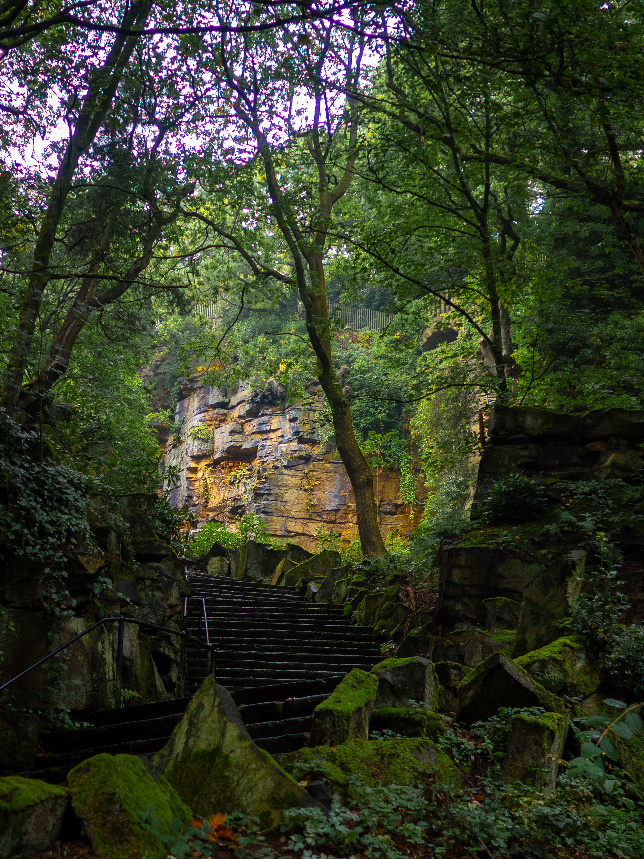 We start off by walking down the steps at one end of the park to the bottom tier. This castle like structure was the original entrance to the park. The mud track on the other side was once the road at which horses would arrive on, but it later got replaced by a railway and since then many different entrances were created (not so grand!) on the upper tier to the park. I first stumbled upon this park when riding my bike not long after moving to the area and couldn't believe my eyes when I saw this, it was like something out of Lord of the Rings!