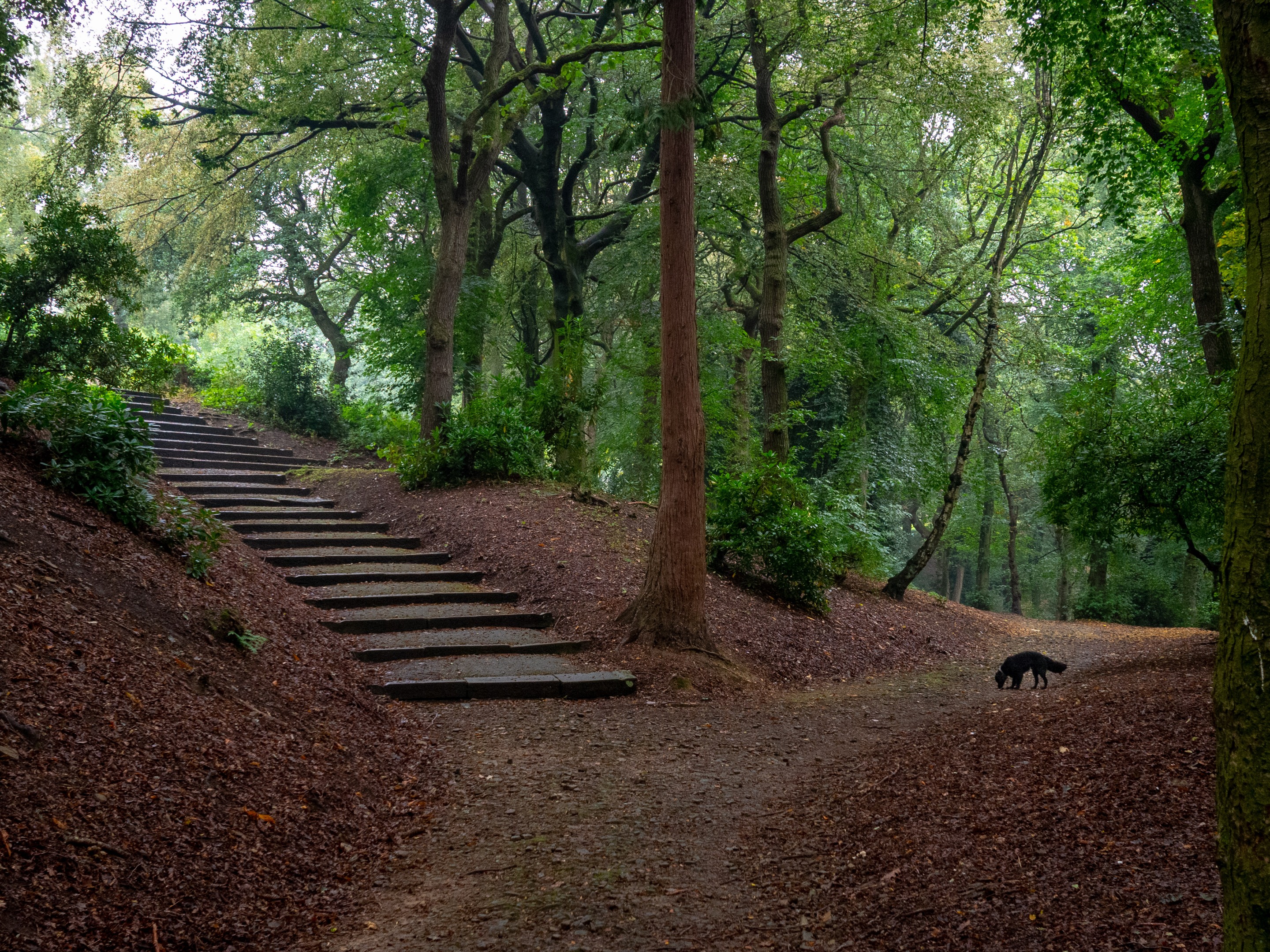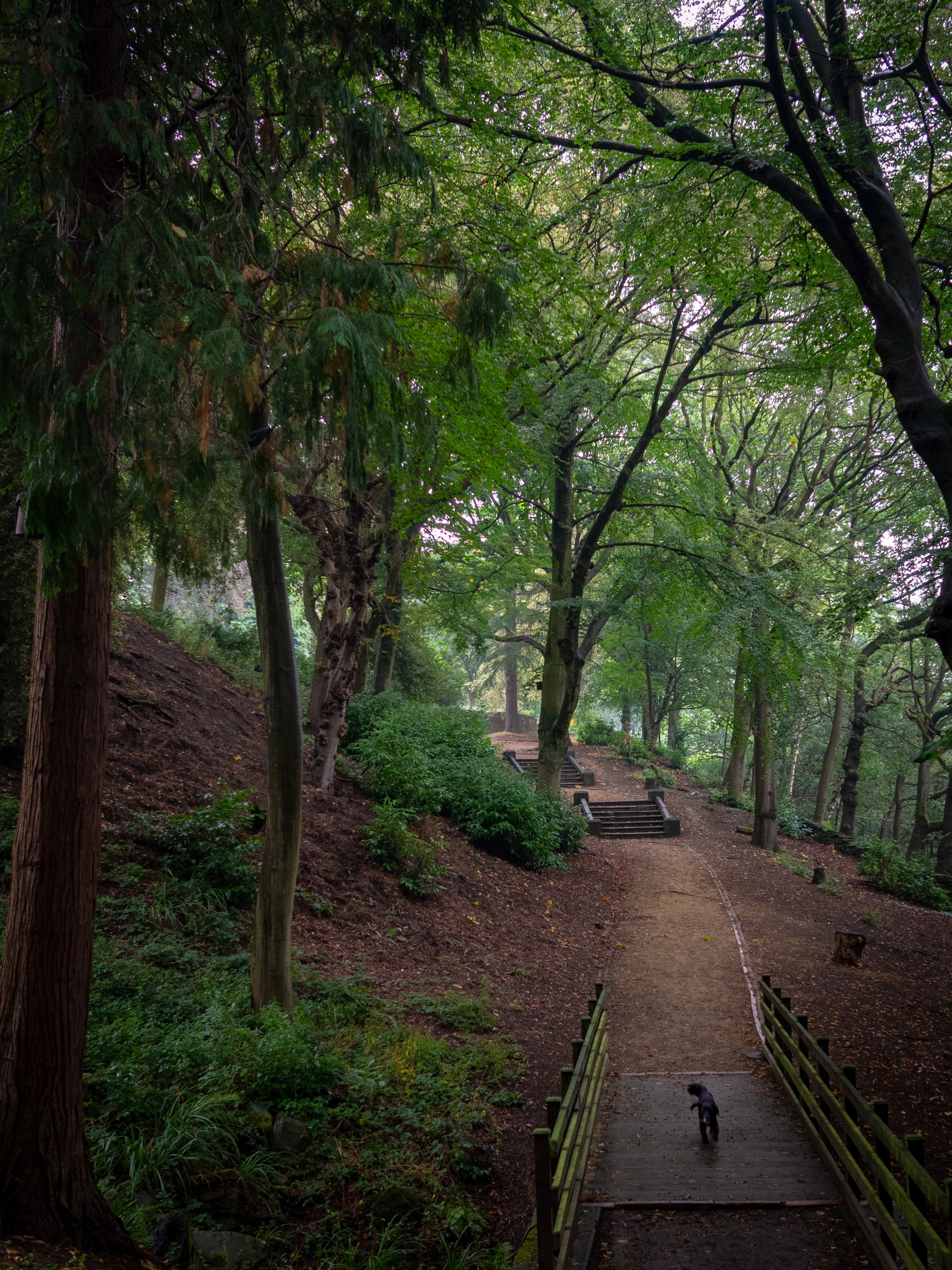 We pass on by these stairs to the upper tier but don't take the opportunity, there's more interest in the lower tiers. More trees, less people, more intrigue in general. The top tier is more for families with a long wide concreted path down the centre, often occupied by families pushing prams or smaller dogs who are kept on lead. Our dogs need to be let off to release their energy and explore, so we tend keep to the lower levels.