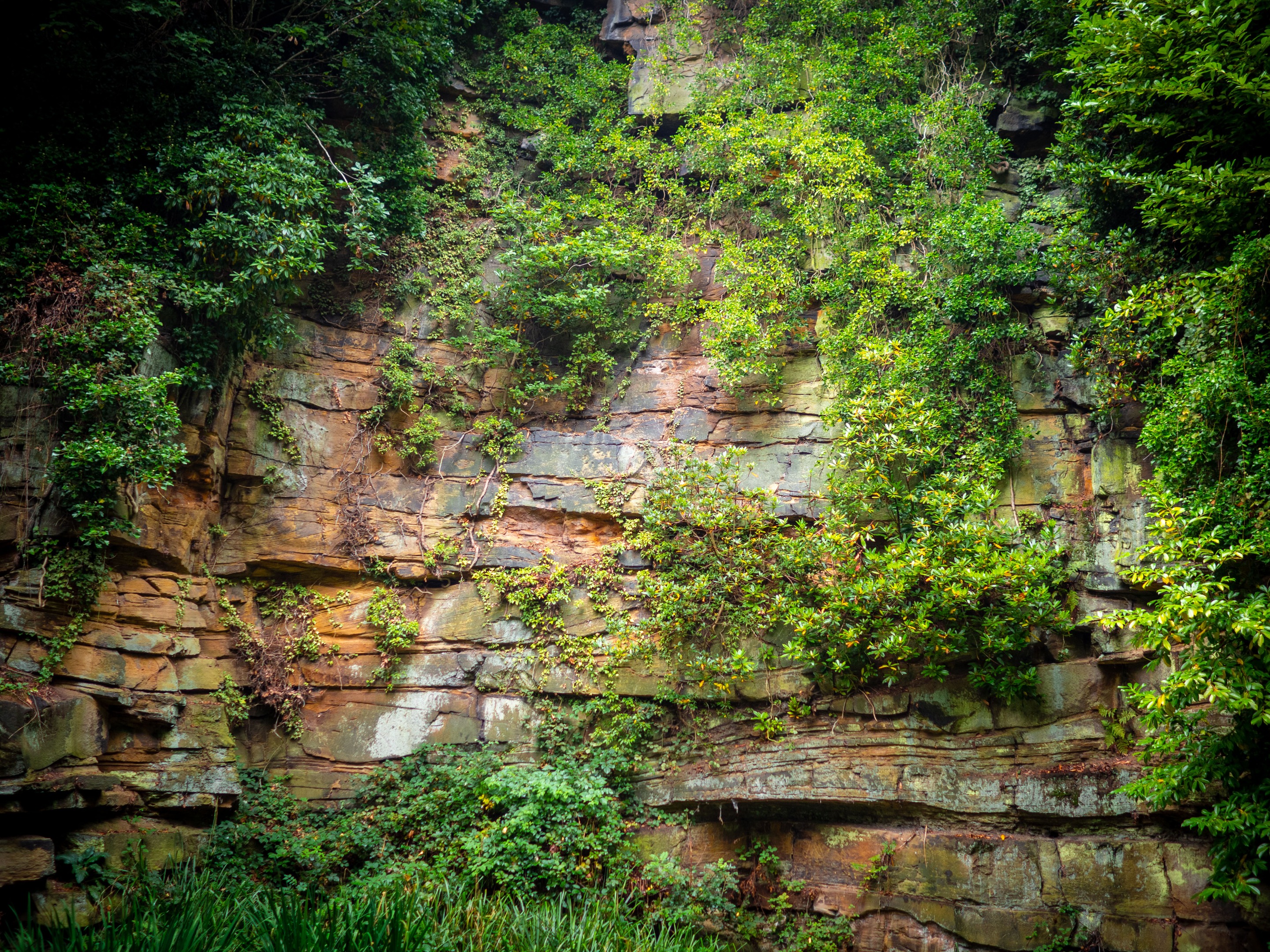 Next we ascend up some stairs to the middle tier. The top and middle tiers are separated by this rock face. It's lovely orange colour gives a nice contrast against the surround greenery. There's so many varying colours and textures to look at it's very pleasing to the eye and creates a lovely atmosphere. The dogs love it too; so many smells and nooks and crannies to go and explore they love coming here.