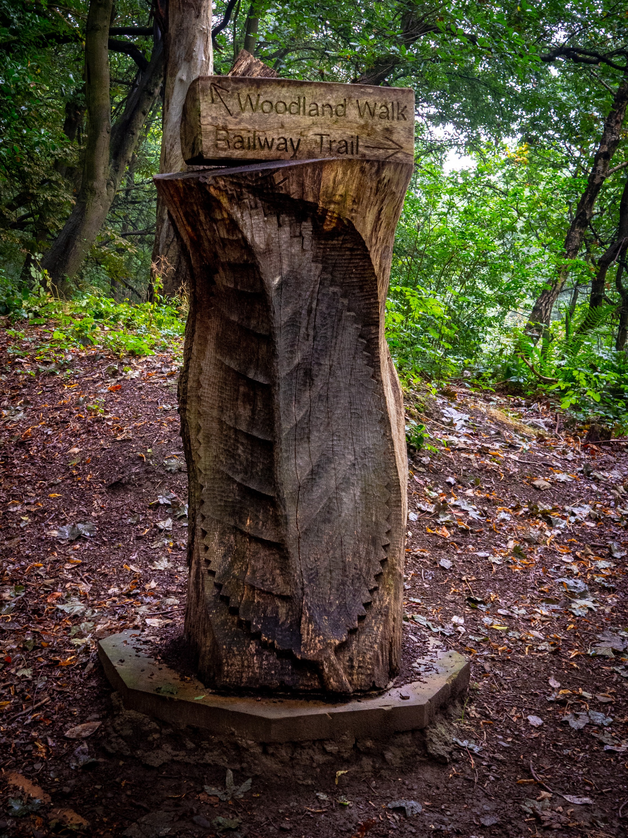 We pass by this beautifully sculptured tree trunk that is being used as a sign to direct walkers to the different tiers. On the banking opposite are these large trees with all their roots exposed, clinging onto banking to keep themselves upright.