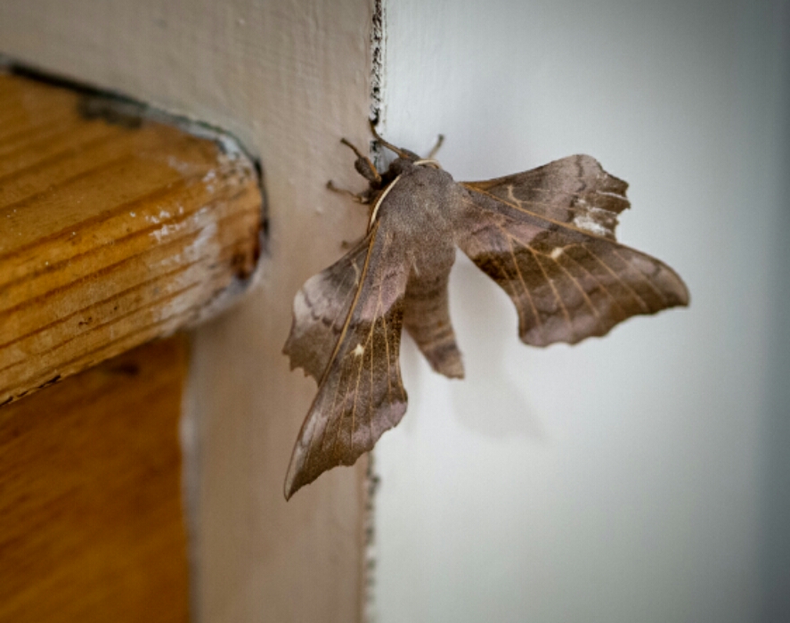 This beast of a moth (for England at least) just sat here all day long, not perturbed by anything. Do you know what sort of moth it is? It looks strong yet fragile simultaneously. A marvel of nature!