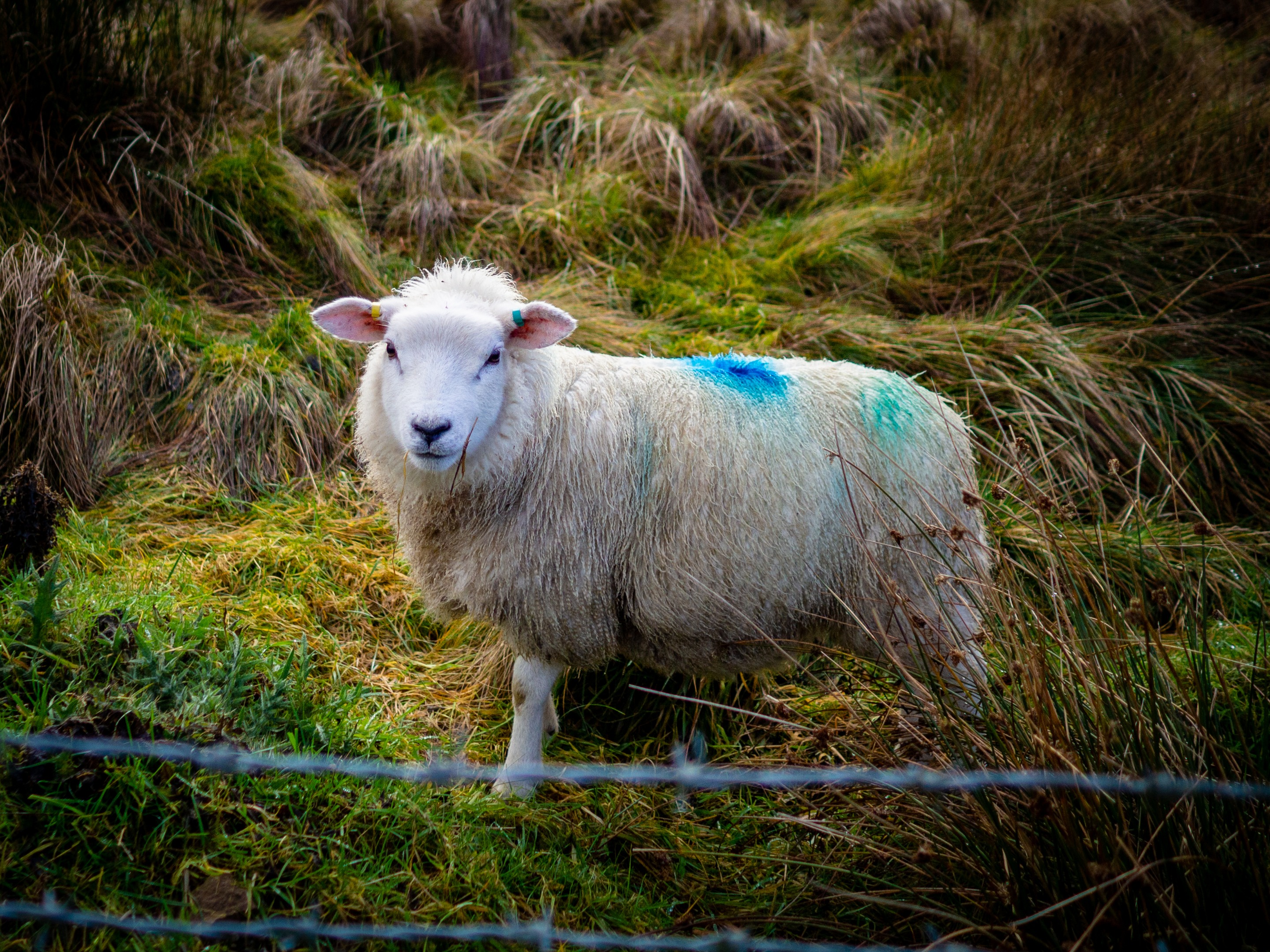 In the next field along a sheep is munching on the long grass very close to the fence. I lean over to take a photo and he looks over at me, not afraid at all! After a brief glance he goes back to his endless dinner. Quite a photogenic sheep this one!
