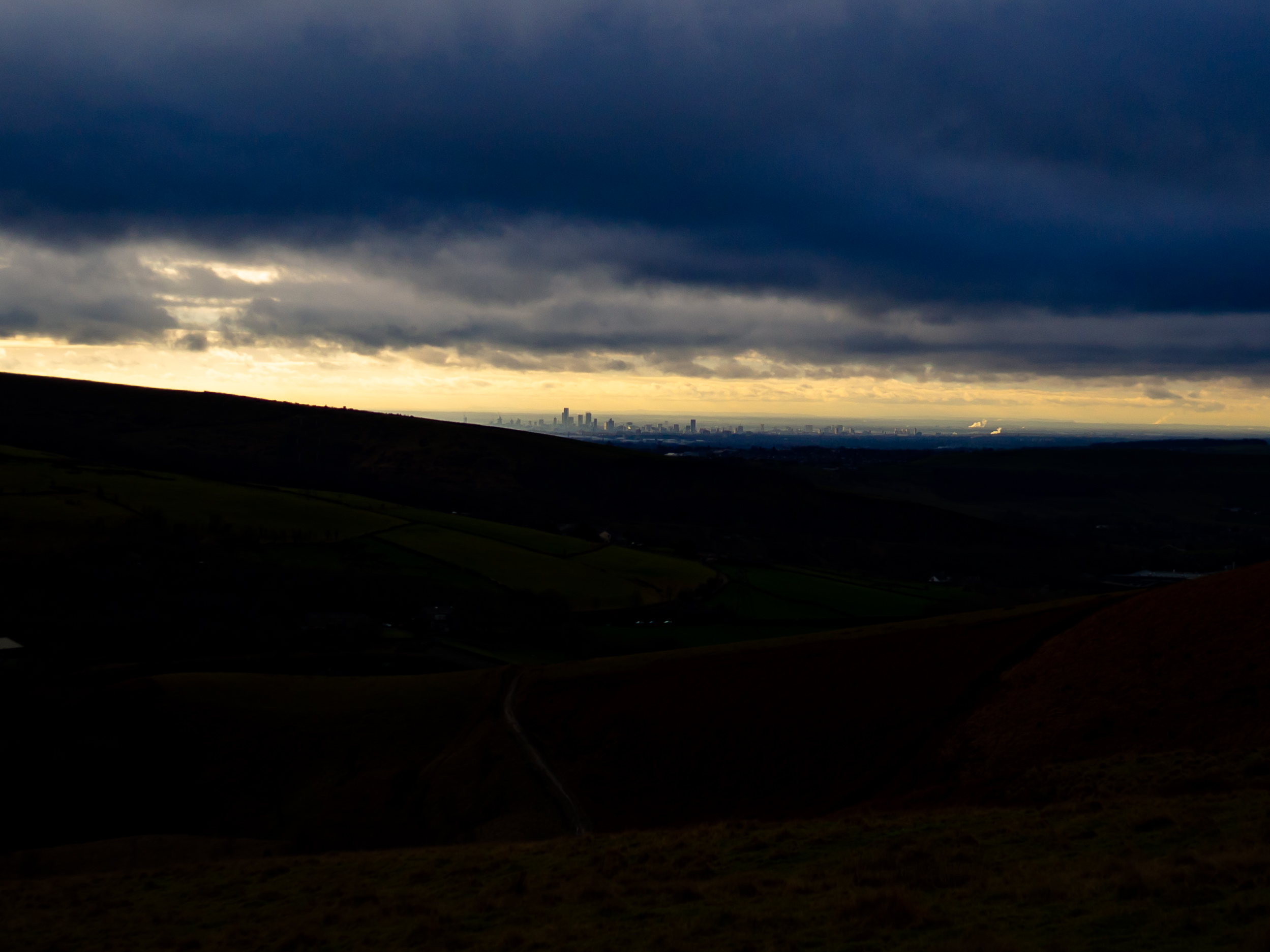 As we come down the high path back to the car we get a view of Manchester. It looked a lot closer in person. I needed a different lens with me to capture this better, but it still looks cool :)