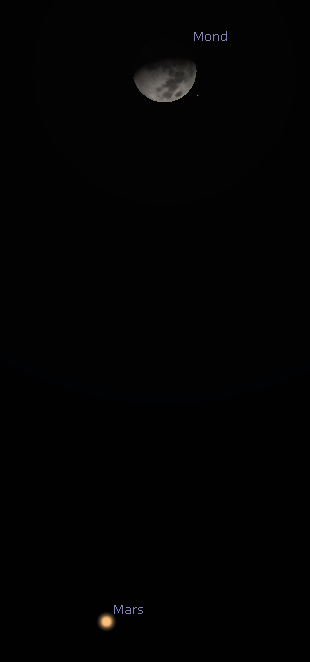 In Kenia you can see Mars too! The screenshot below (from a sky-software) shows the Moon and Mars, how you would see them in your country. Can you verify it for me whether this is correct? Mars, of course, much, much smaller, not as brilliant like in this screenshot!