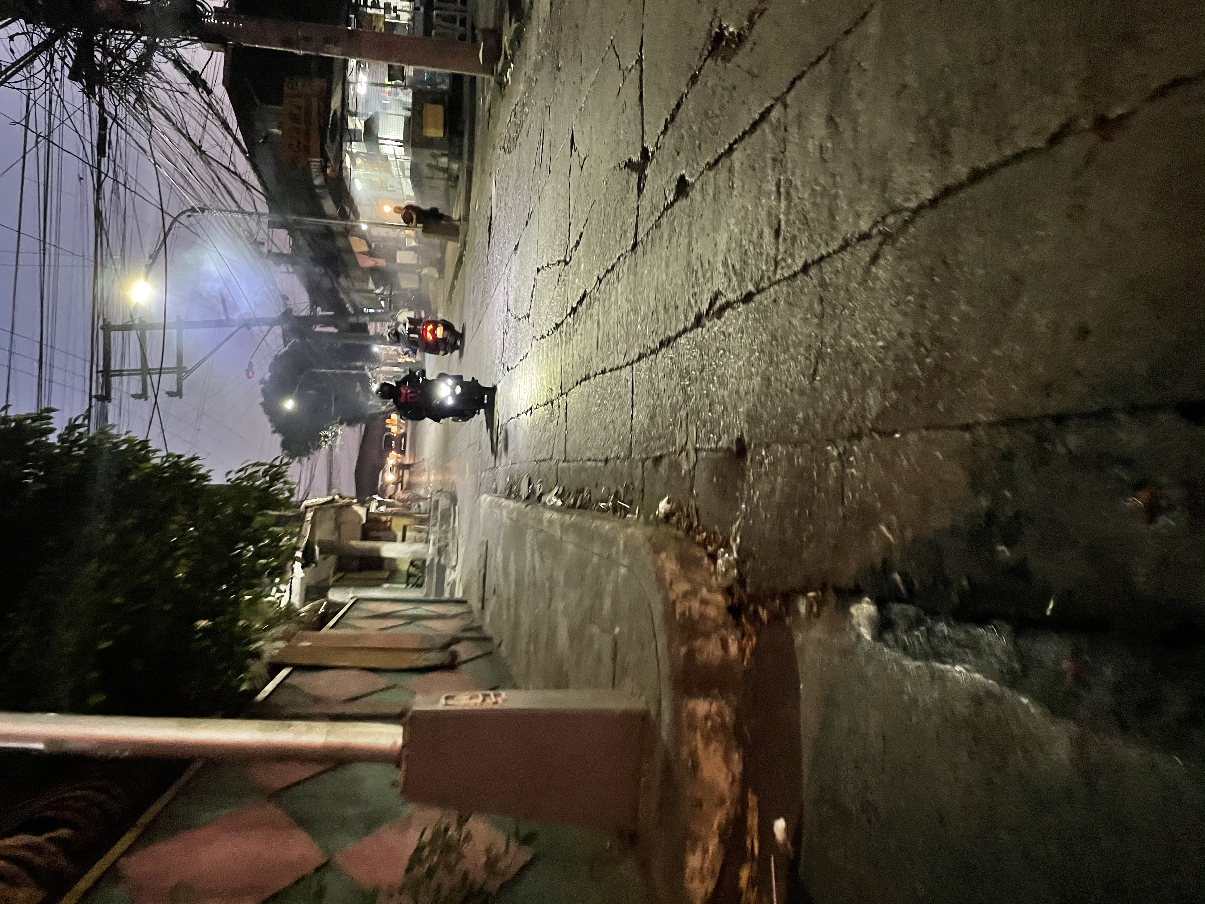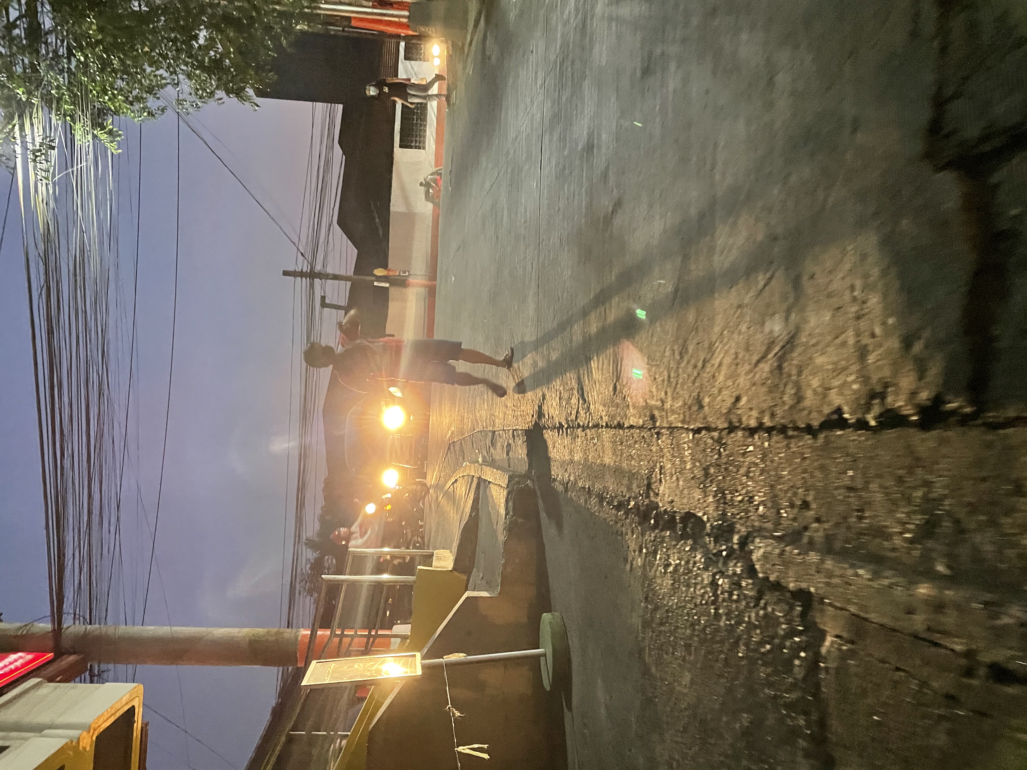 Reaching halfway consumes 10 minutes of walking. Of course no more sunlight up there. You can catched your own shadow as it reflect on the road together with the street lights.