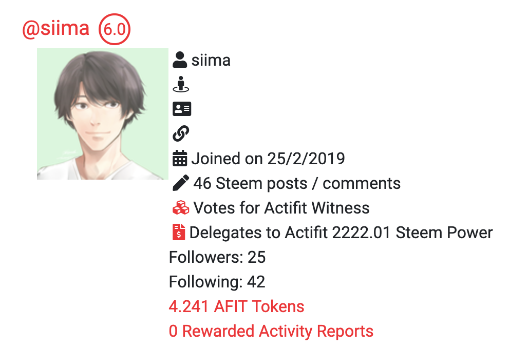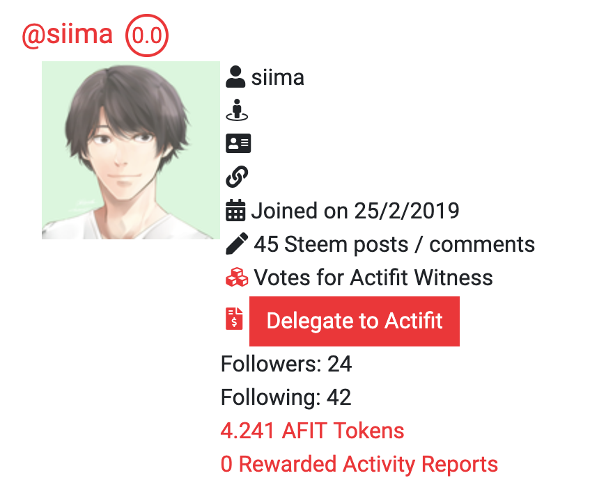 delegationした人は、上の写真の「Delegate to actifit」のところが数値に変わっています。
