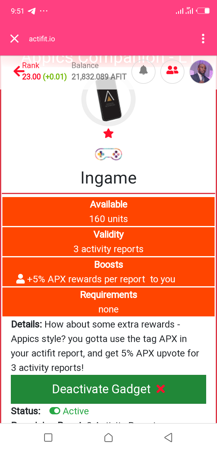 I also headed for the "Appics Companion L1" product which promises an extra rewards of 5% APX tokens. Recently, there had been an amazing collaboration between @appics and @actifit and it seems to be one of the biggest collaboration in the steem blockchain via the #getinshapechallenge.