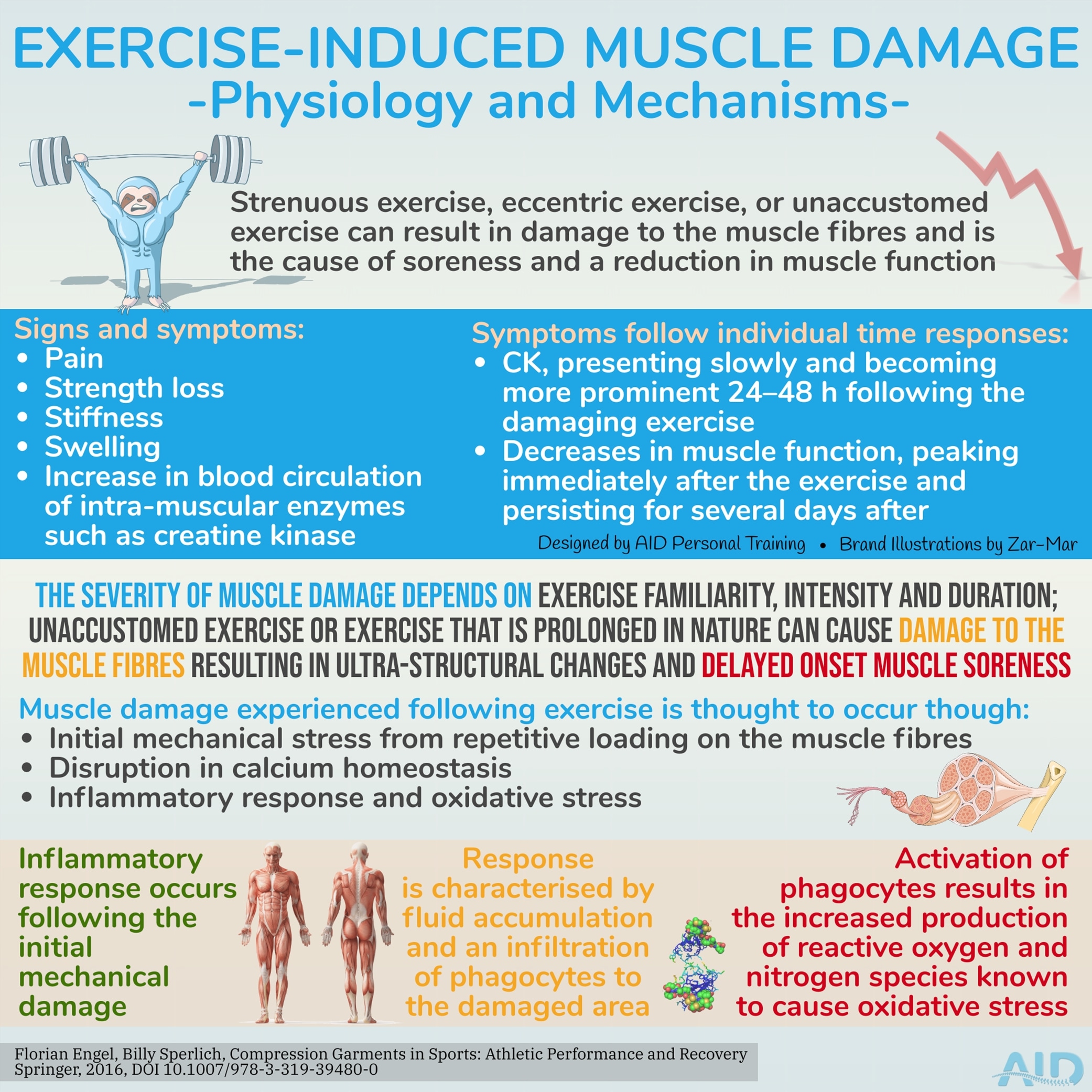 Physiology of post exercise muscle damage (soreness).