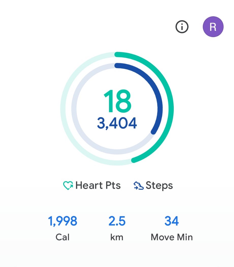 According to Google Fit, I walked 3,400 steps, 1,998 km, and burned 2.5 Cal. Take care of your health and enjoy your life in a healthy way.