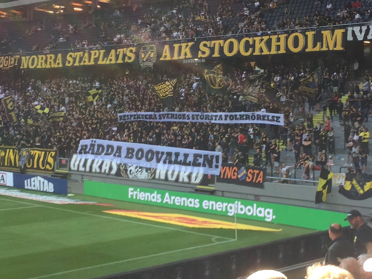 Banderoll på Norra Stå under AIK-Elfsborg.