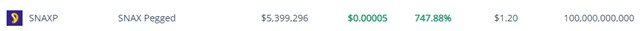 A token pegged to the SNAX crypto currency. 1 SNAXP = 1 SNAX on the SNAX blockchain.