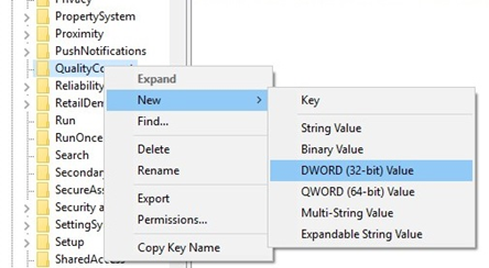 - Haz click derecho sobre QualityCompat y elige Nuevo valor DWORD (32Bits)
