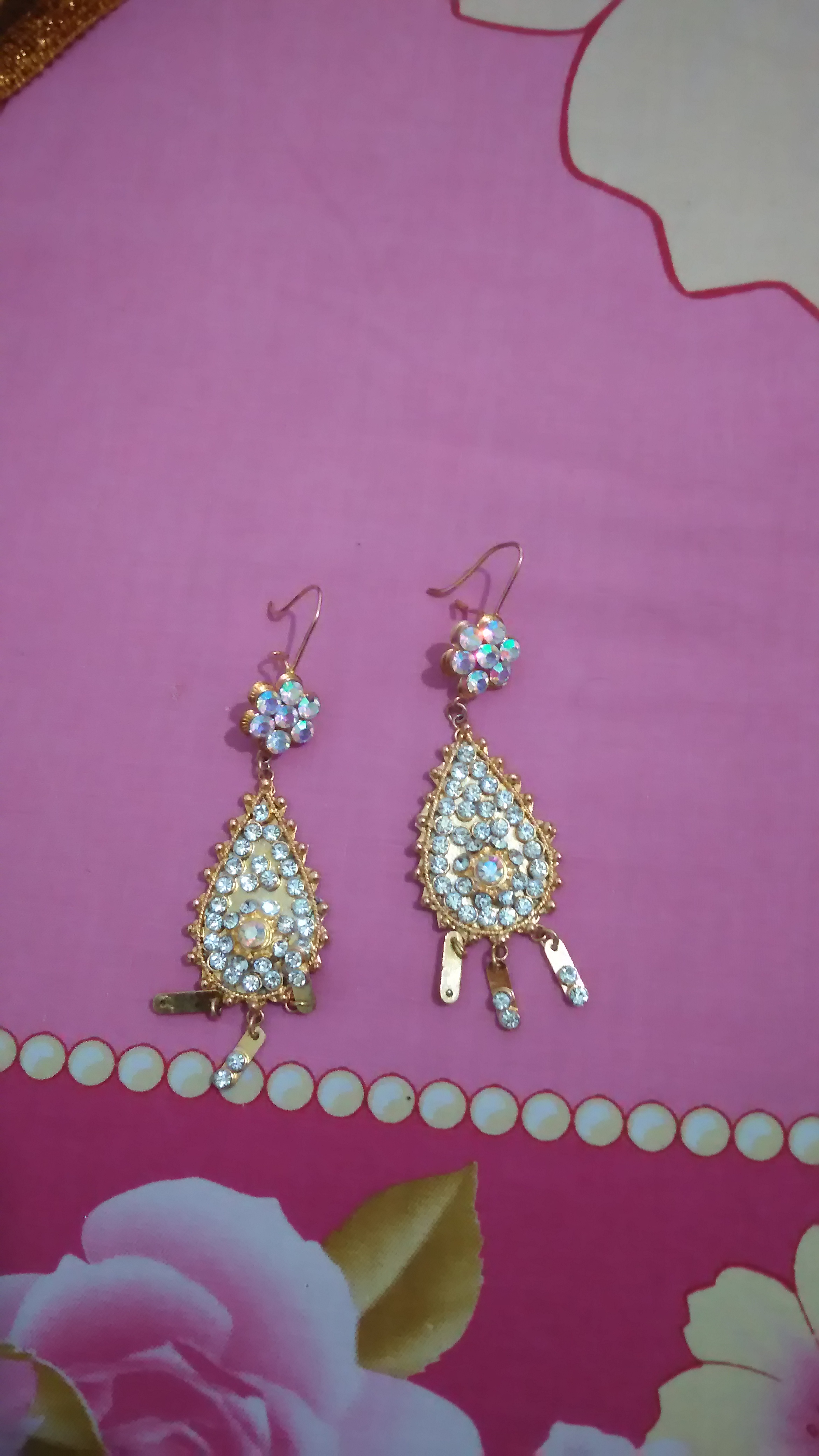 Sepasang anting ikut menambah meriah hiasan kepala tersebut. Meskipun tidak mungkin dipasang di telinga, sebab tertutup jilbab, perias pengantin Aceh tak kekurangan kreatifitas. Sepasang anting itu disematkan di jilbab tepat di posisi daun telinga berada.